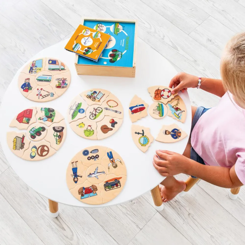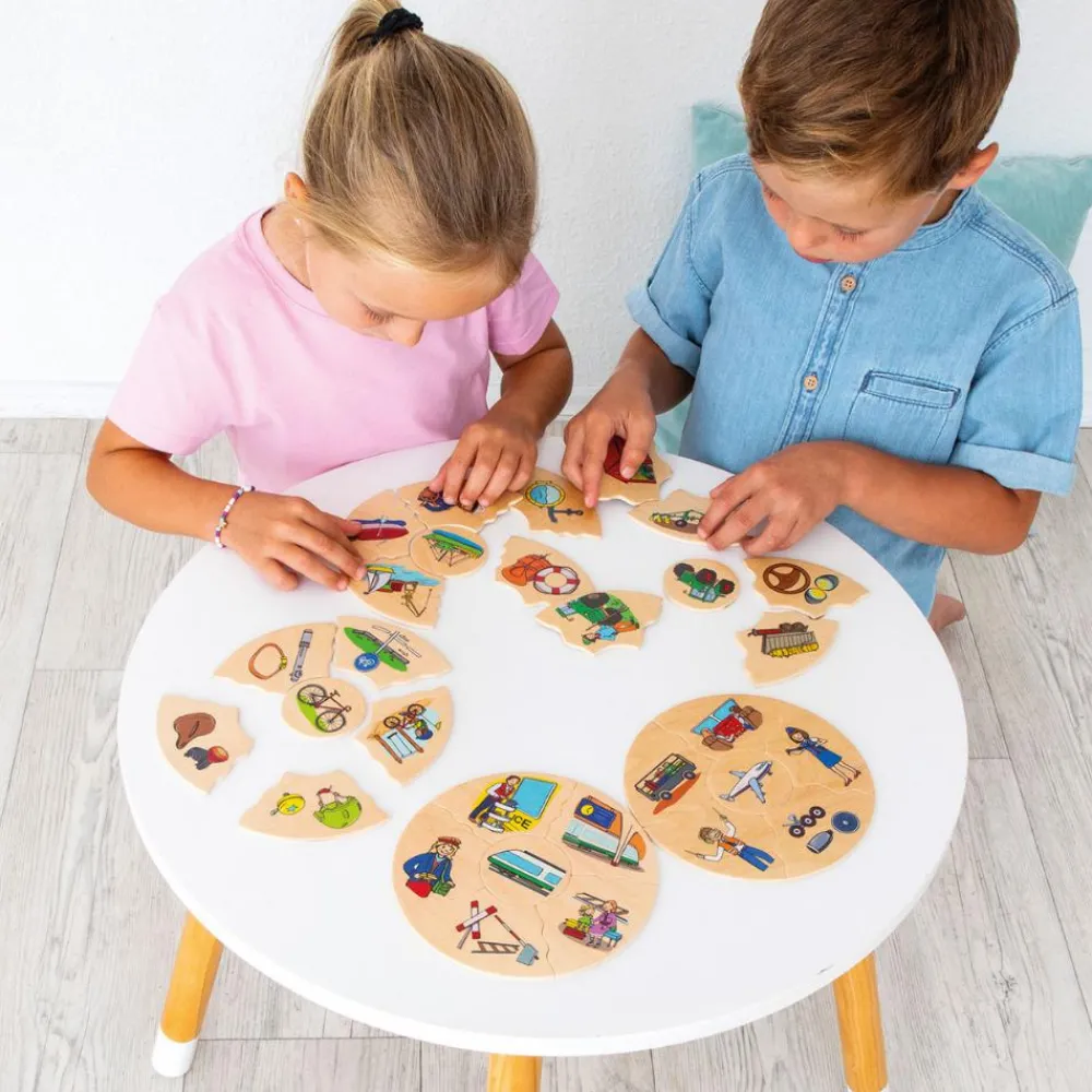 Har puslespillet et særligt emne som fx anatomi, junglens dyr eller verdens flag, så styrker det ordforrådet hos dit barn, når I snakker om det, mens I lægger brikkerne.