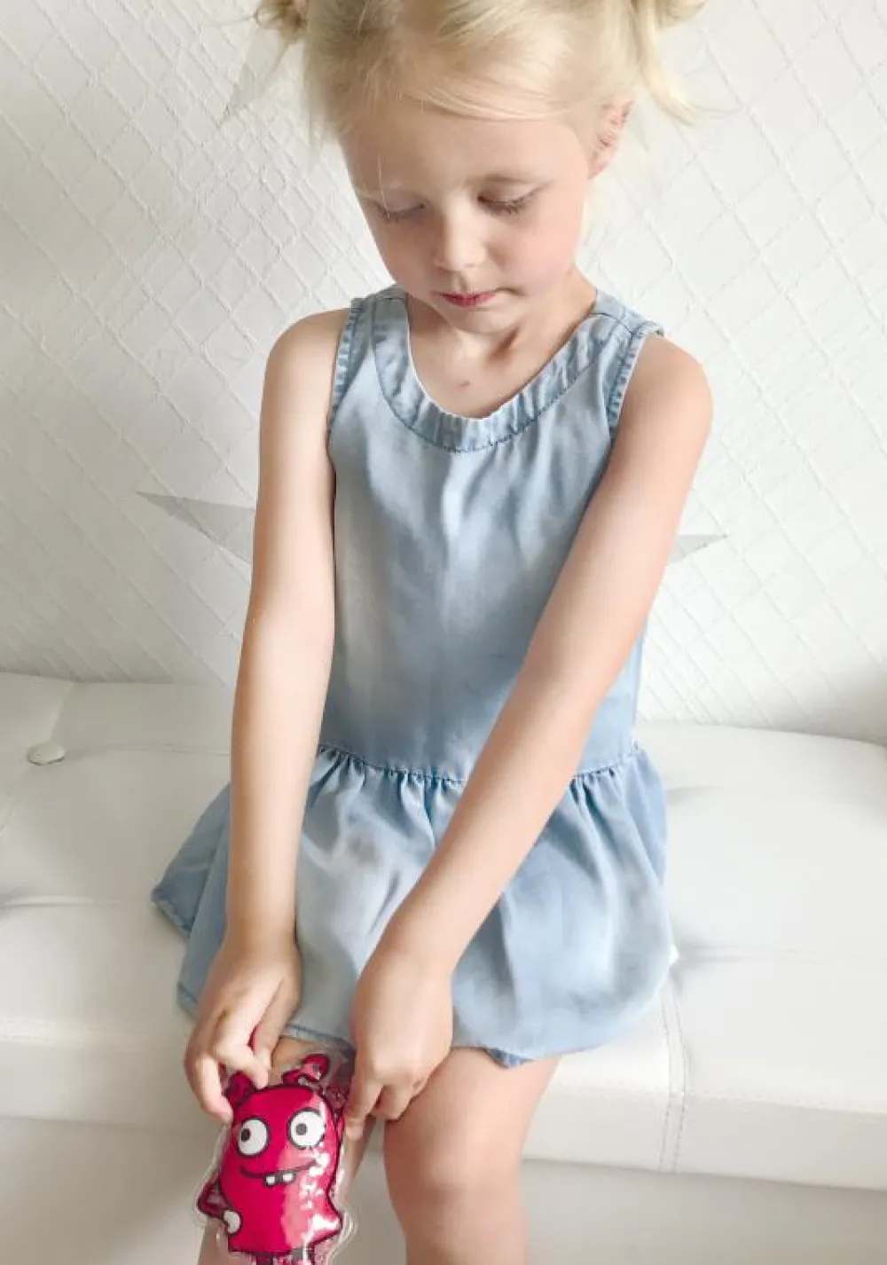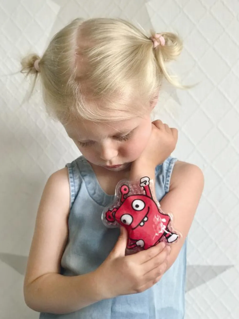 Dette hjælpsomme monster står klar tillidt kold eller varm trøst, når dit barn kommer til skade.