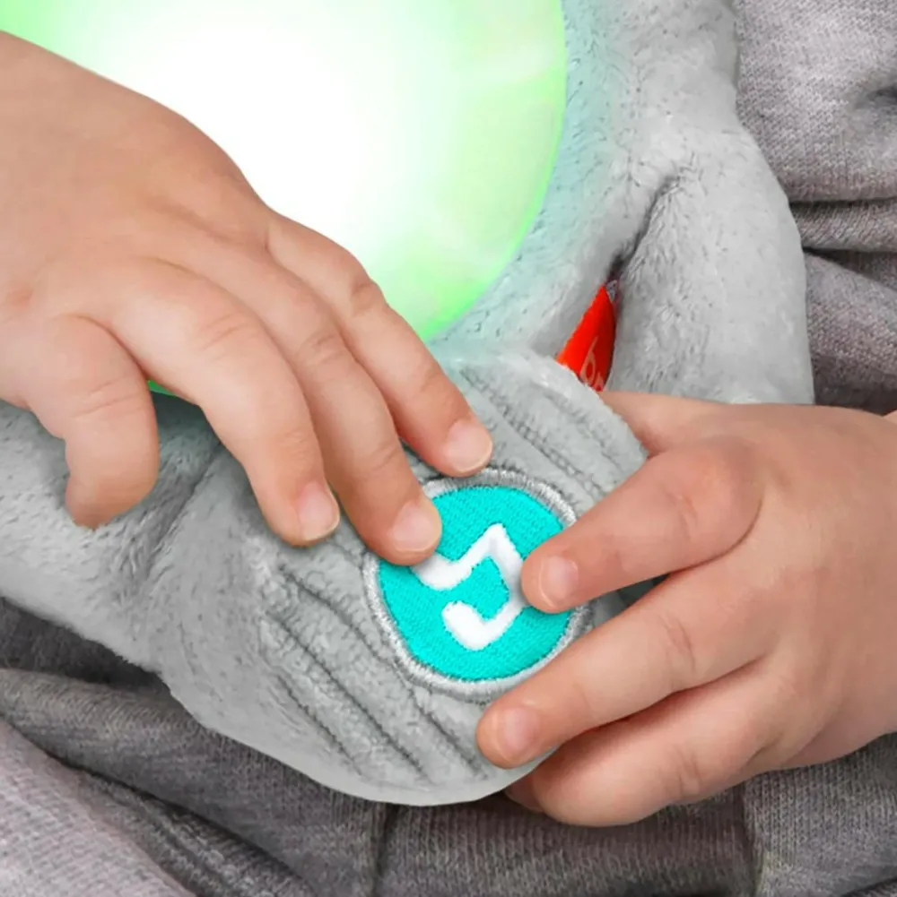 Kær aktivitetselefant, som kan spille forskellige melodier, når den trykkes på sin højre fod. Samtidig med at der spilles musik, blinker elefantens mave, mens ørene knitrer.