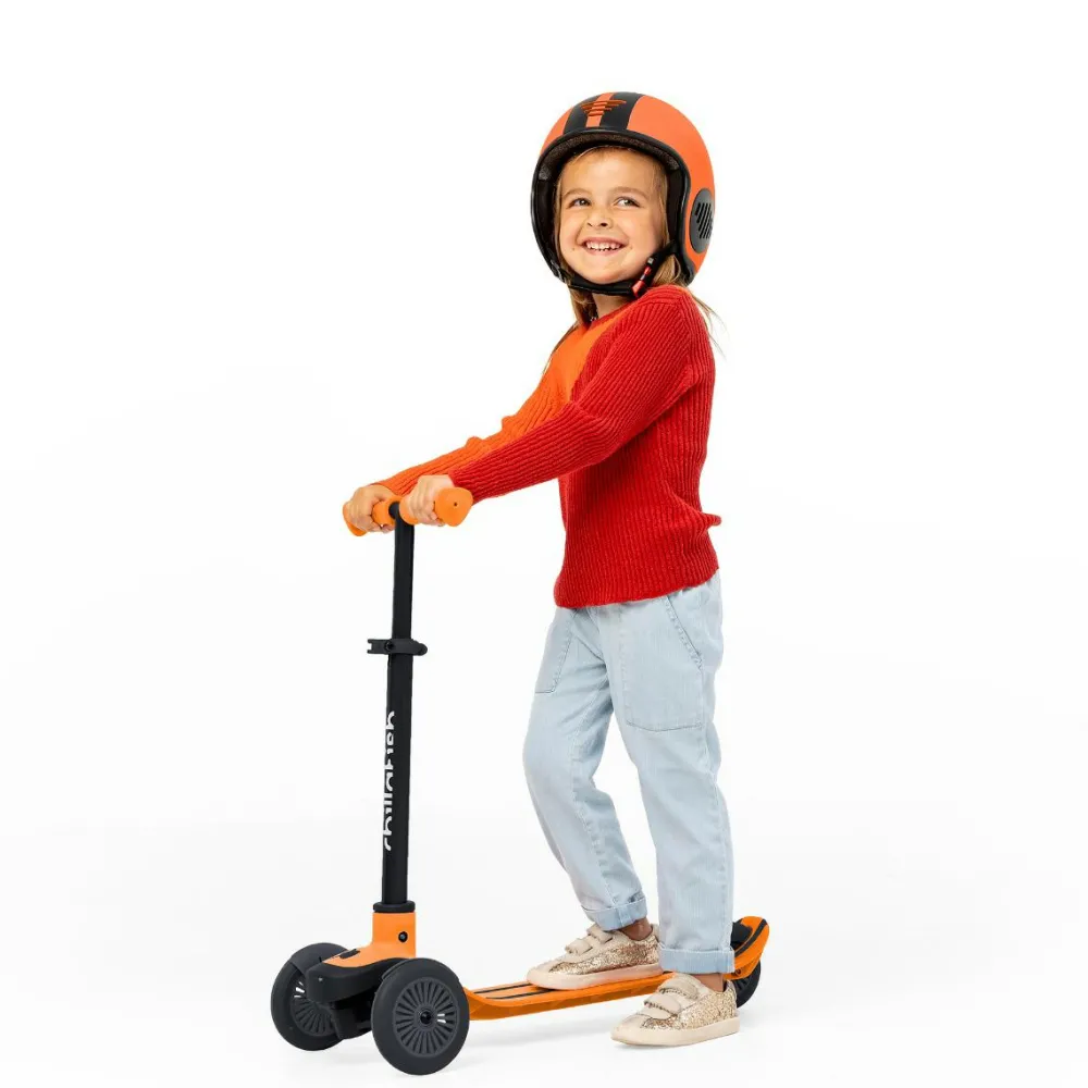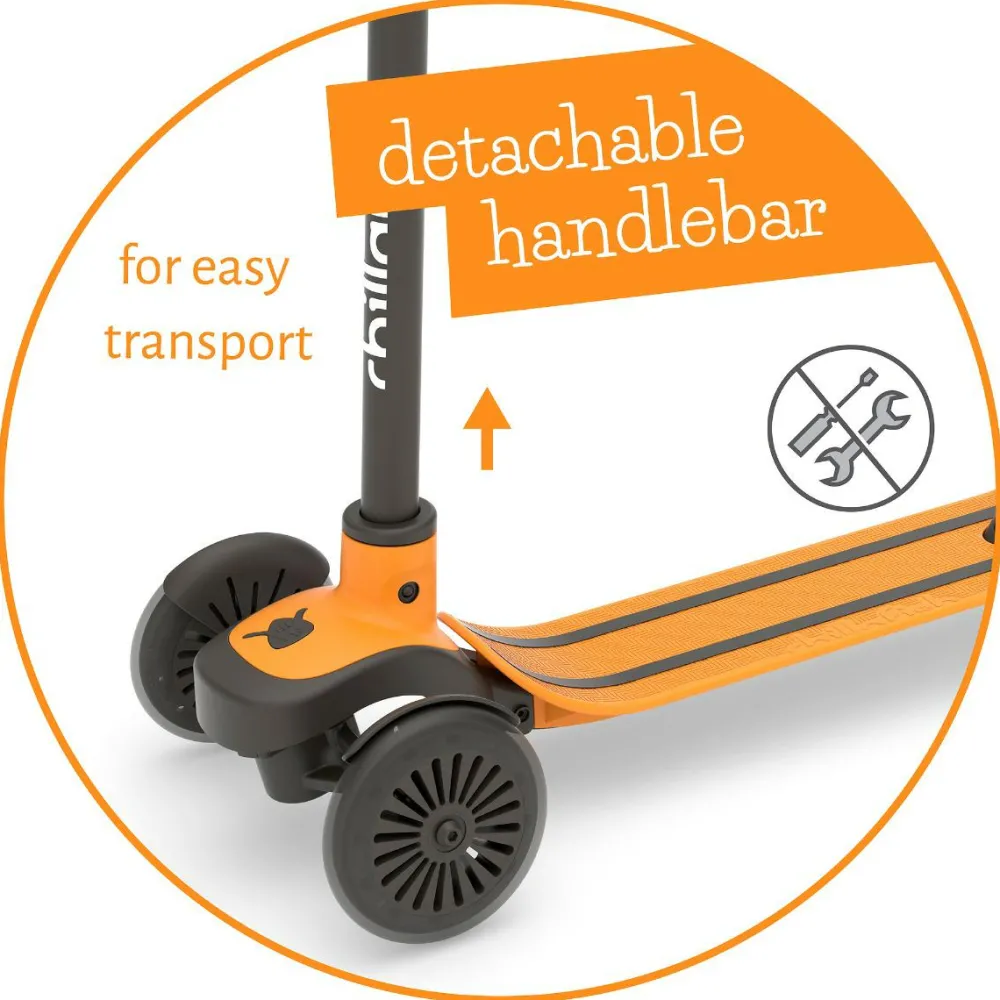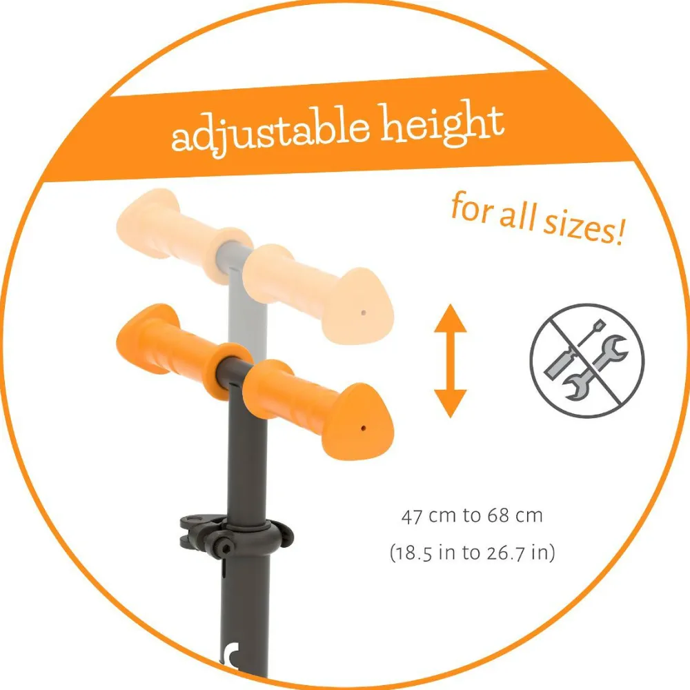 Flot trehjulet løbehjul, hvor styret kan justeres i tre højder og nemt tages helt af, så løbehjulet er nemmere at transportere eller tage med ind.
