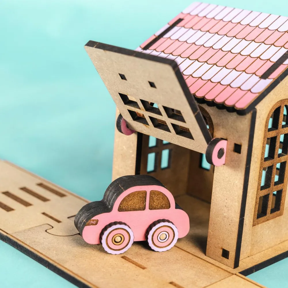 Danskproduceret trælegetøj, der kan bygges sammen med andre Crateit Town-sæt. Her får du et lille fint hus med vinduer at trille bilen ind i eller parkere ved siden af lige ved vejen.