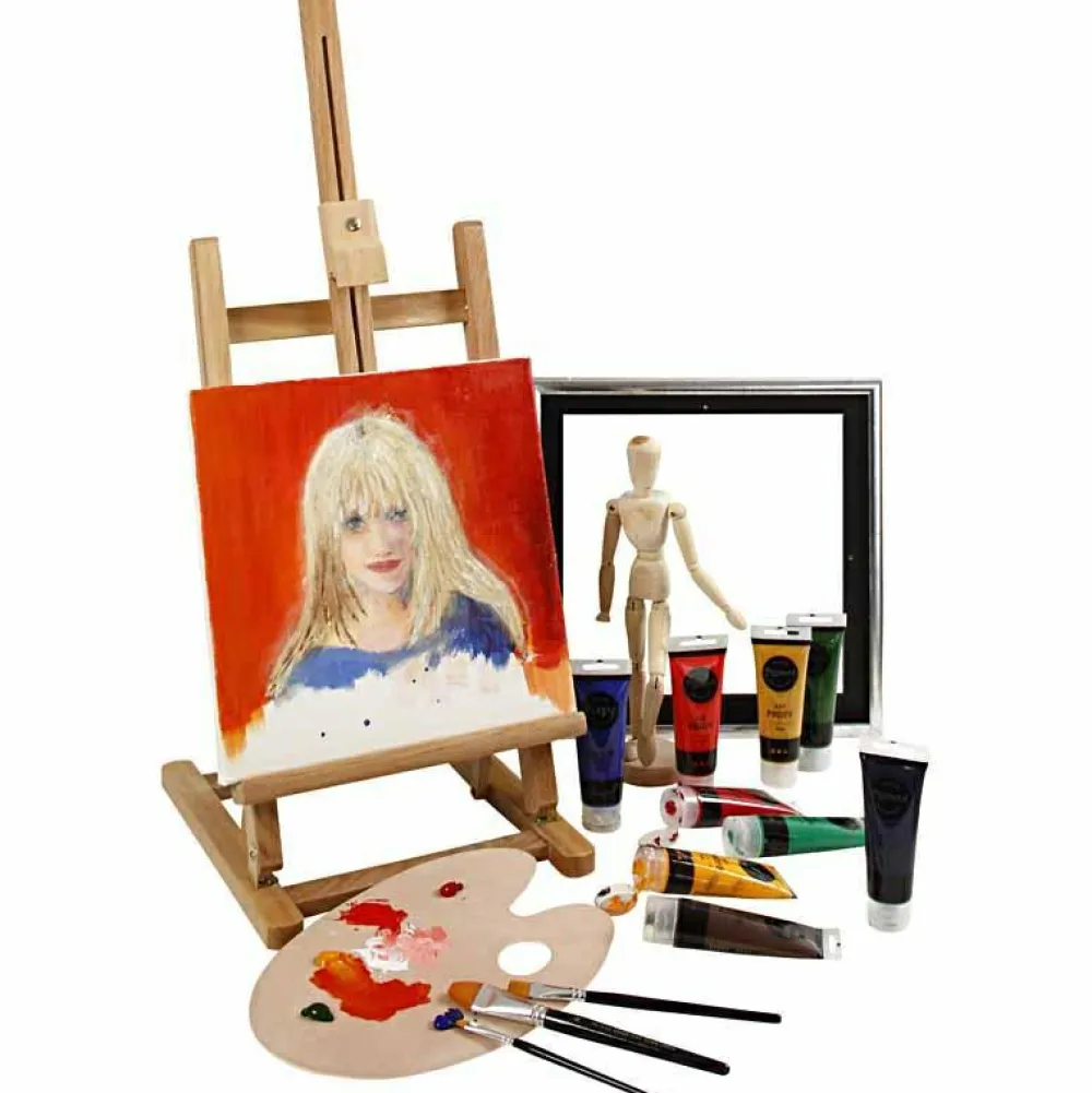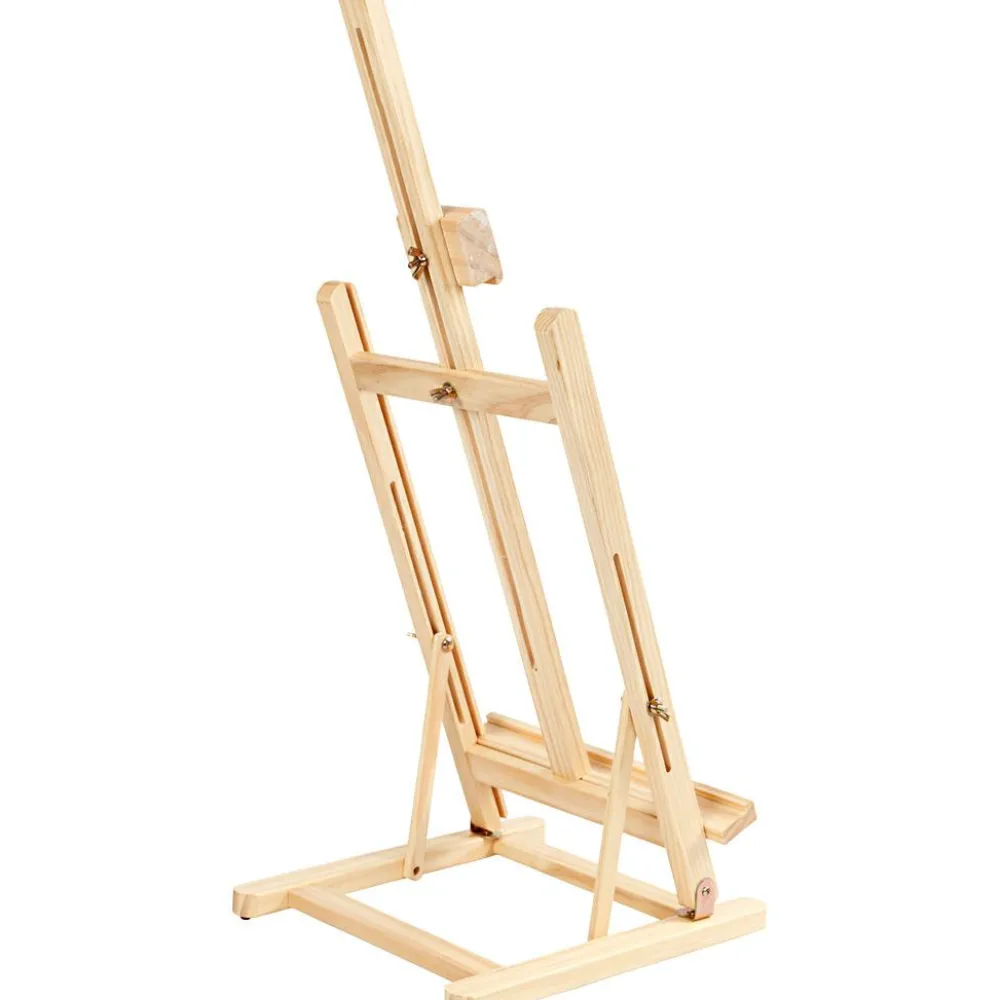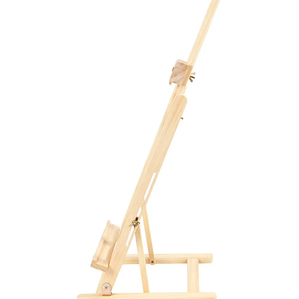 Gedigent bordstaffeli i træ med justerbar lærredsvinkel. Let at folde sammen, transportere og opbevare.