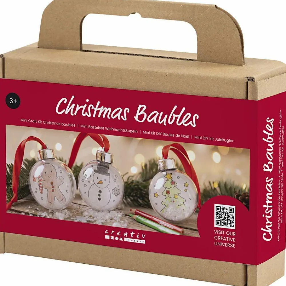 Indhold: Julekugler, kartoncirkel m. motiv, farveblyant, bånd, sne og lim.