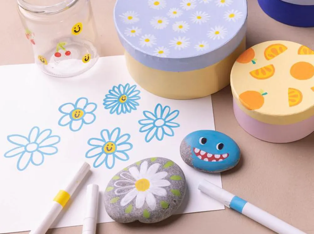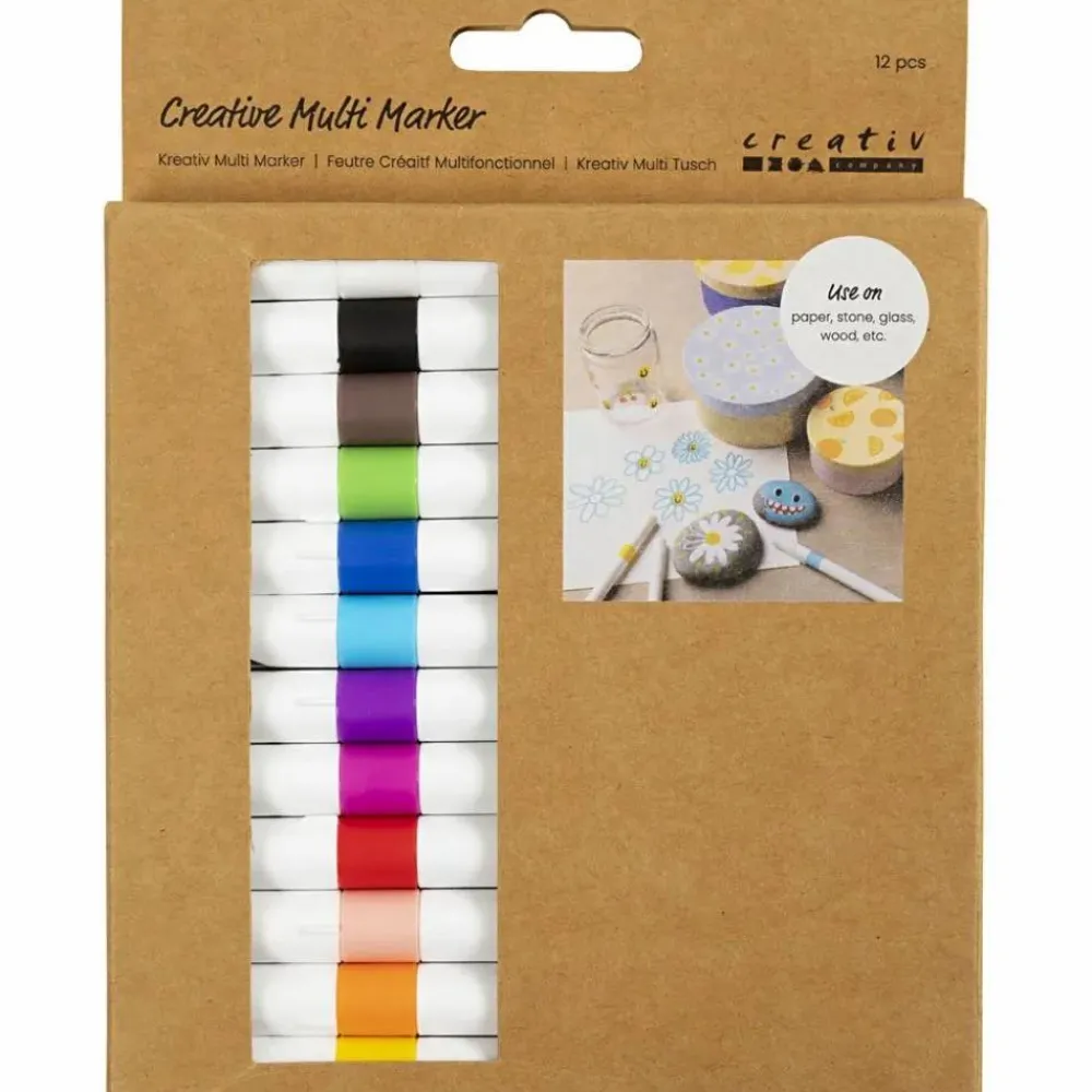 Gode til tegninger på papir, lærred og pap men også på fx sten, porcelæn, glas, træ og metal. Maler du på sten, skal farven lige tørre et minut eller to, inden du kan vende stenen og farvelægge videre på den anden side.