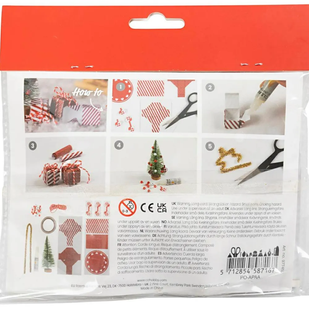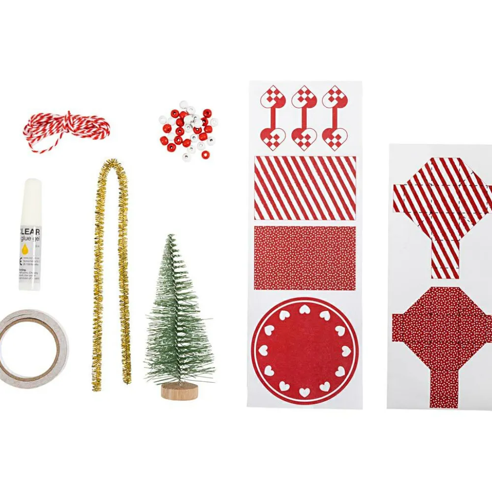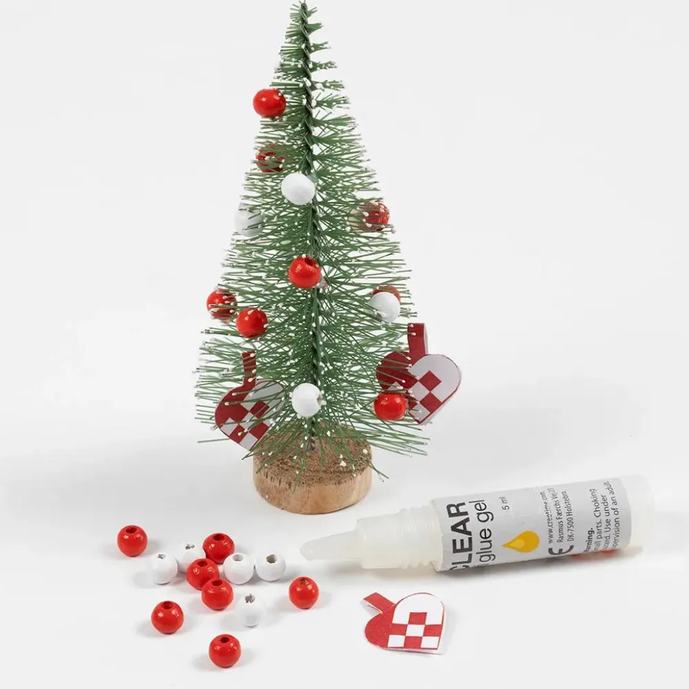 Indeholder: Mini juletræ, glitter-piberenser, perler, snor, tape, skabeloner og lim.