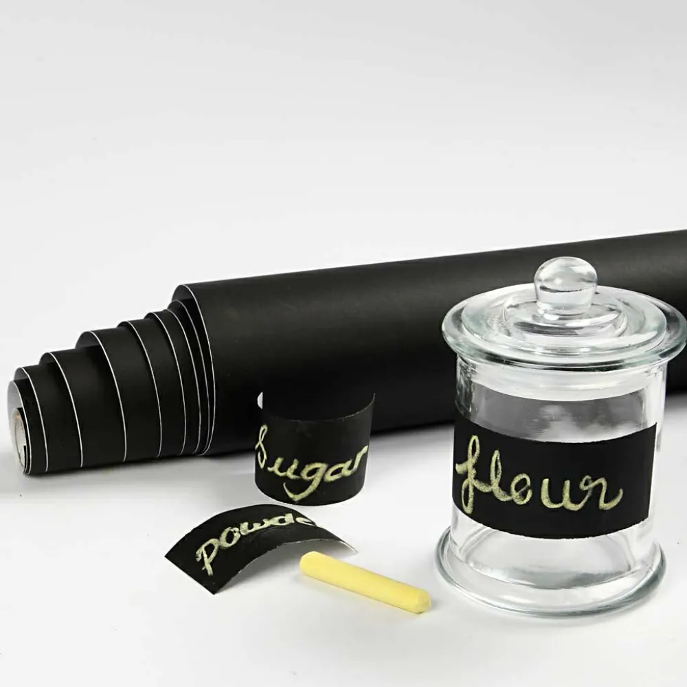 Rulle med selvklæbende, sort tavlefolie til indendørs brug.