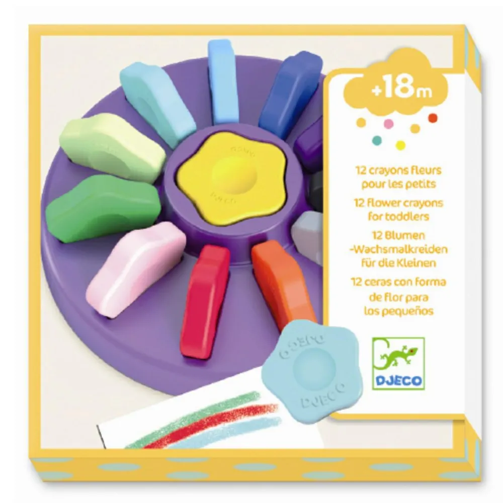 Perfekt formede fedtfarver til små barnehænder. Disse fine fedtfarver dækker godt, og de er hver især formede som blomster, der ligger godt i hånden for de små fra 18 mndr og op.