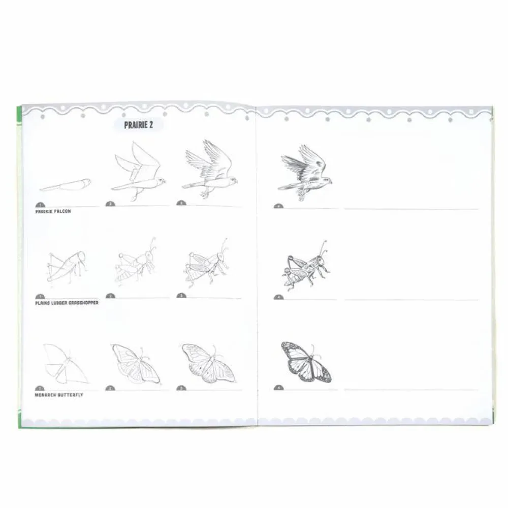 Lær at tegne bl.a. græshoppe, en falk og en monark-sommerfugl og deres levesteder med trin-for-trin vejledning af kunstneren Linda Bleck.