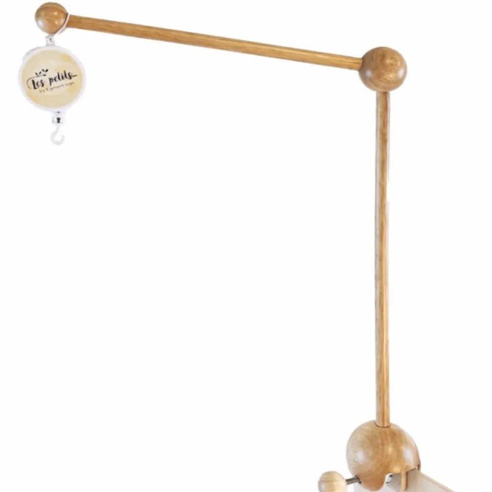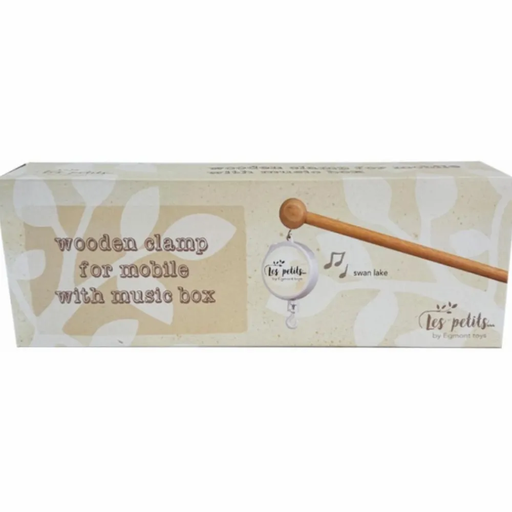Denne holder af træ kan sættes fast på kanten af dit barns seng eller over puslebordet. Du kan hænge den medfølgende musikboks på, eller du kan hænge et legetøj, som dit barn godt kan lide at se på.