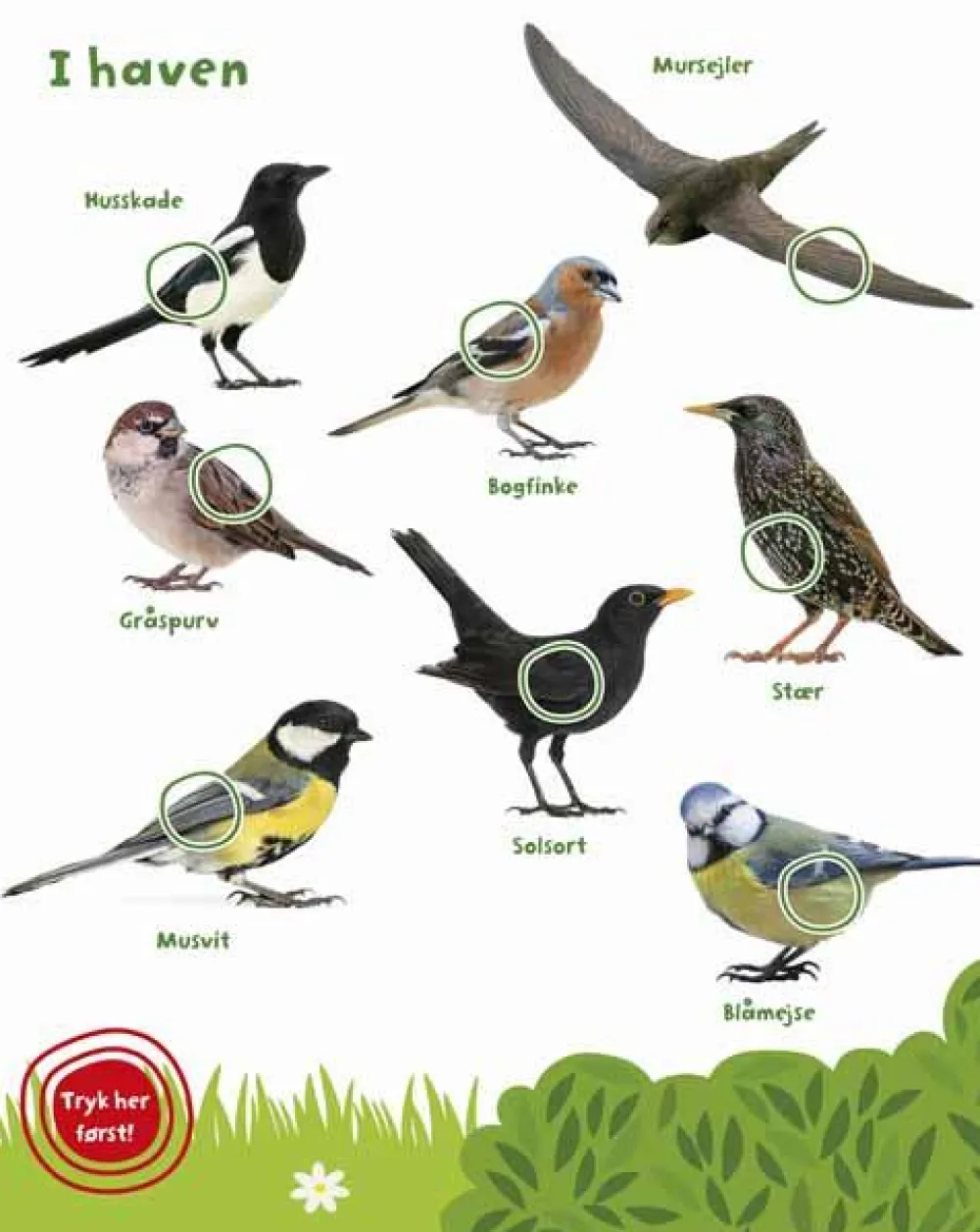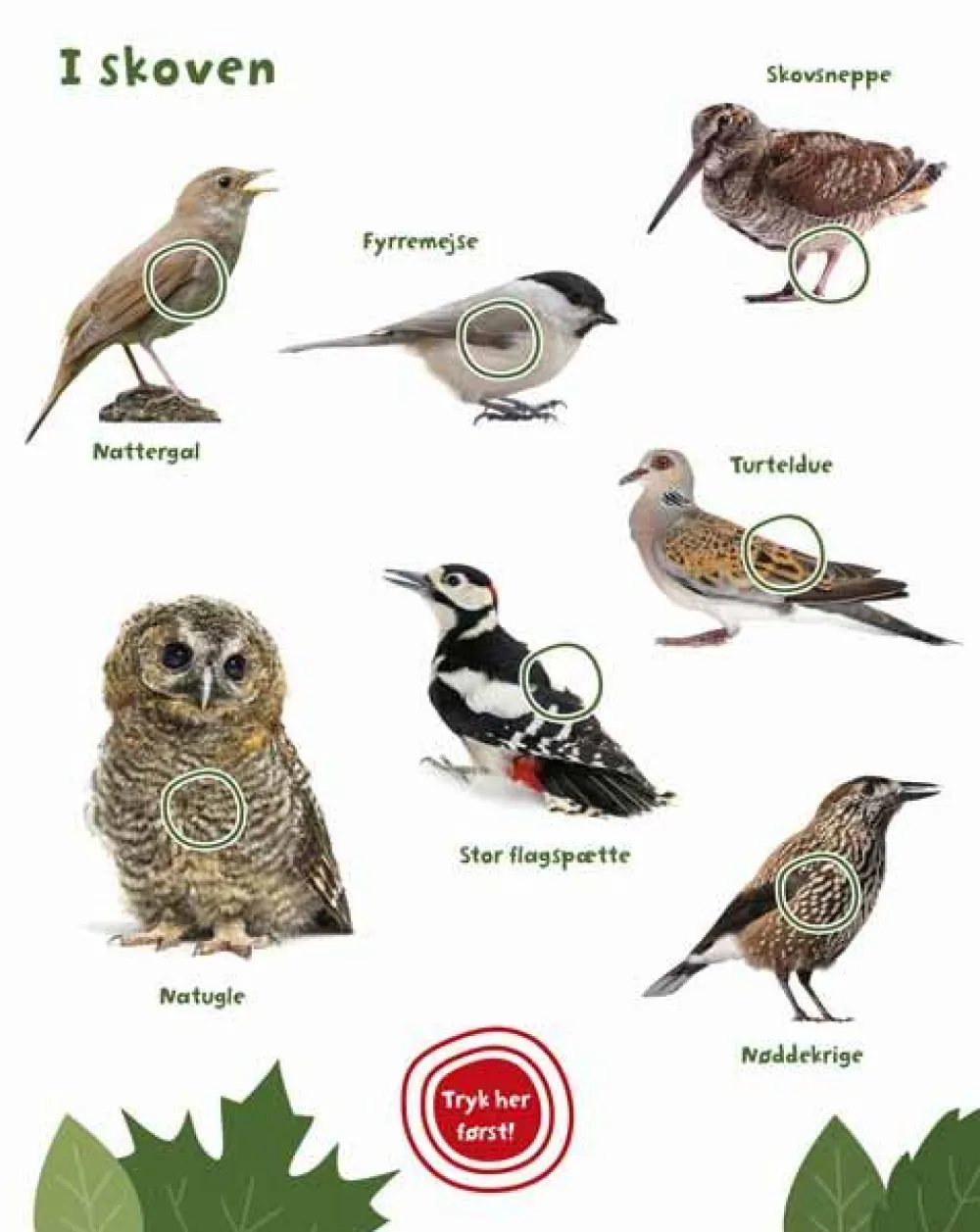 Tryk på bogens knapper og hør i alt 40 fuglelyde.
