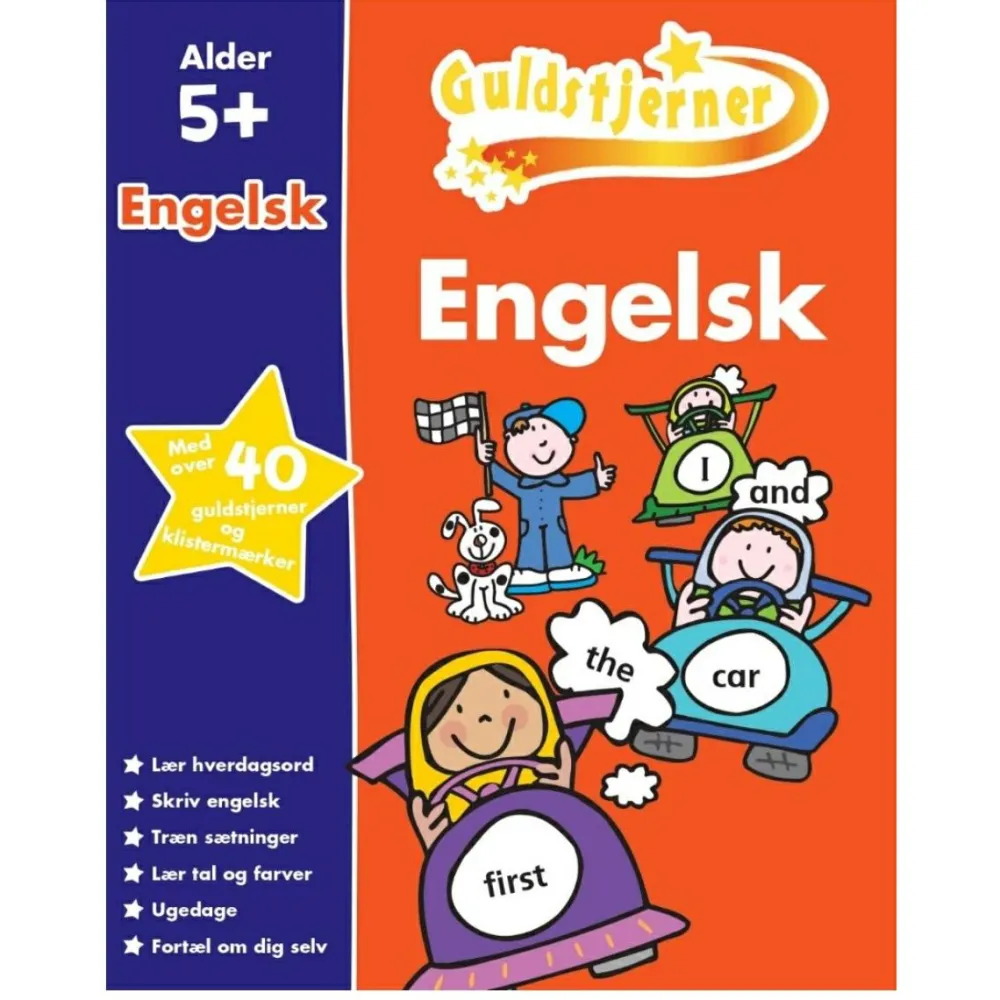 Lær tal, farver, ugedage og enkle sætninger med øvelserne i denne begynderbog fuld af lettilgængelige opgaver til børn, der gerne vil i gang med at lære engelsk.