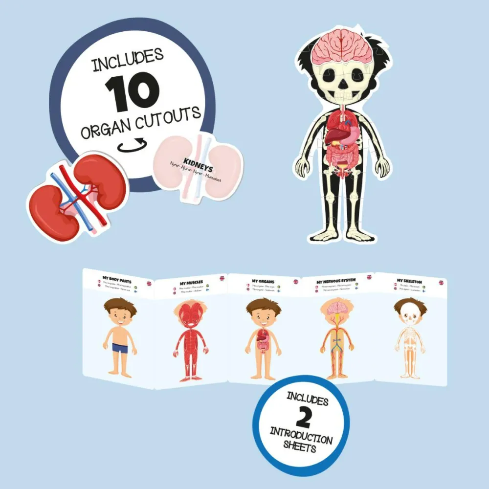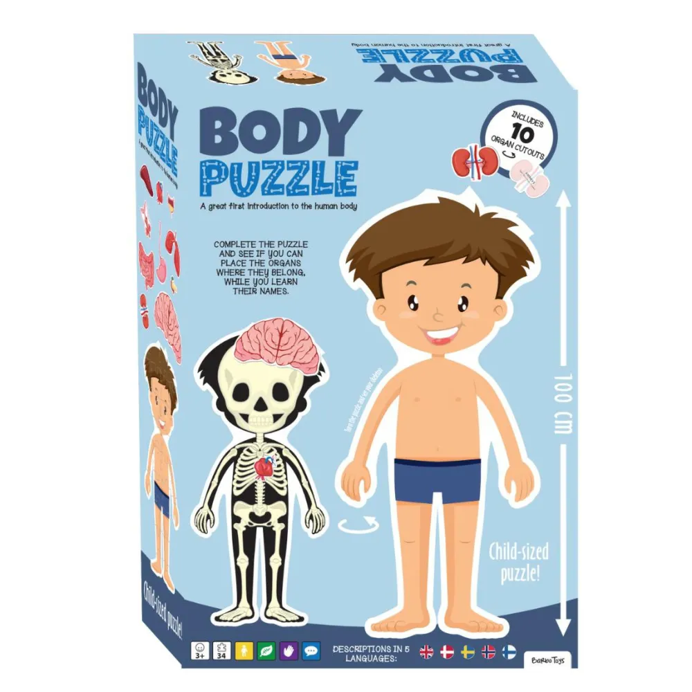 Med dette gulv puslespil kan du styrke dit barns interesse for kroppen samtidig med, at barnet skal ned på gulvet og kravle rundt for at få puslespillet rigtigt lagt.