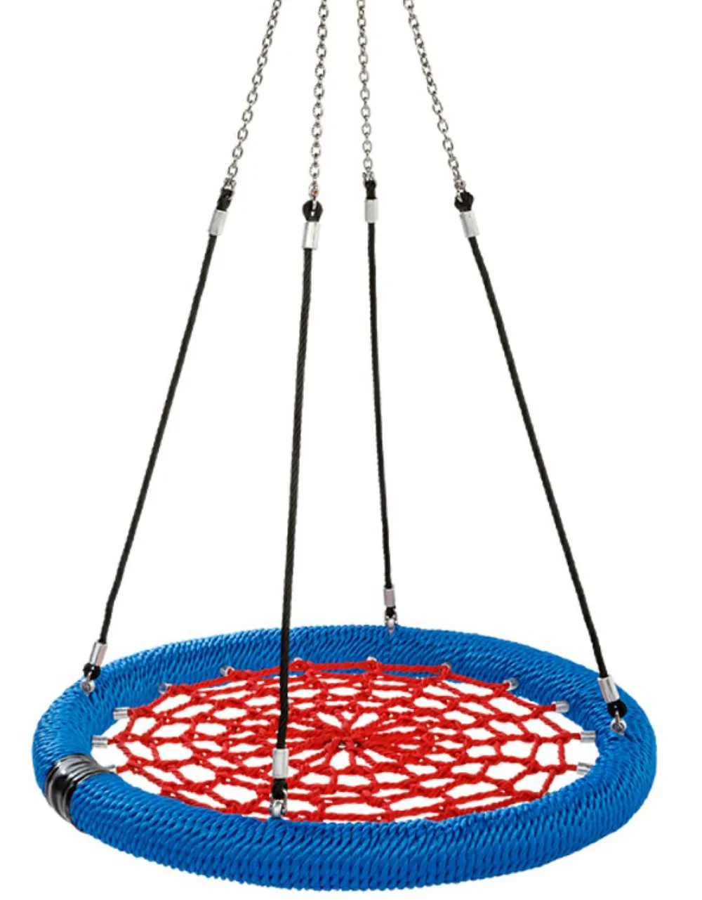 - Ophæng i reb og kæder af rustfrit stål med D-kroge, så det er nemt at justere gyngen i højden