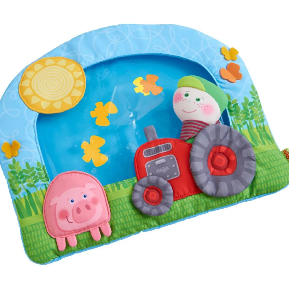Hyggelig aktivitetsmåtte, hvor dit barn kan træne sine nakke- og rygmuskler, mens det ligger på maven og leger med aktiviteterne, hvilket er en god måde for dit barn at forberede sig på at kravle.