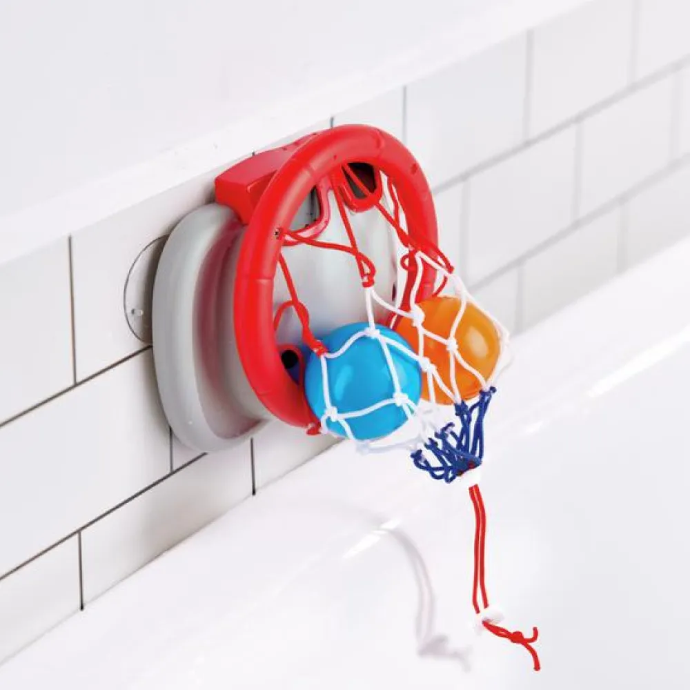 I hvertfald den her type basketball. Her er nettet lige til at sætte op på fliserne i badeværelset med sugekopper, og så er det ellers at skyde til måls.