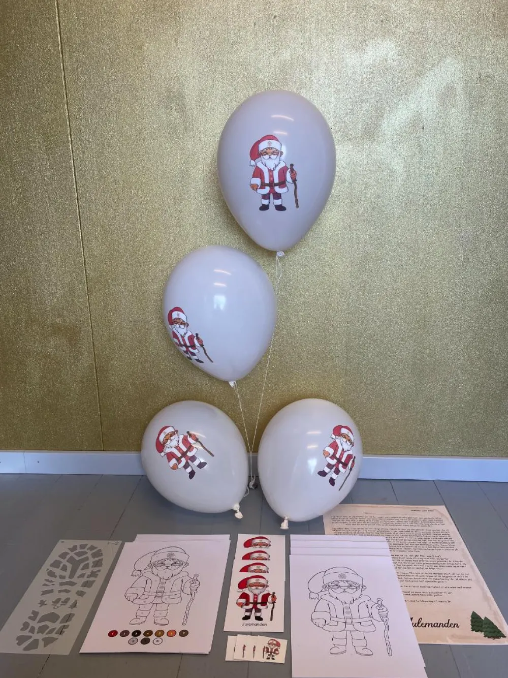 Julemandens fodsporskabelon: Til at lave fodspor ved hjælp af kunstig sne på spray eller mel siet over skabelonen, så børnene kan se, at Julemanden har været forbi.
