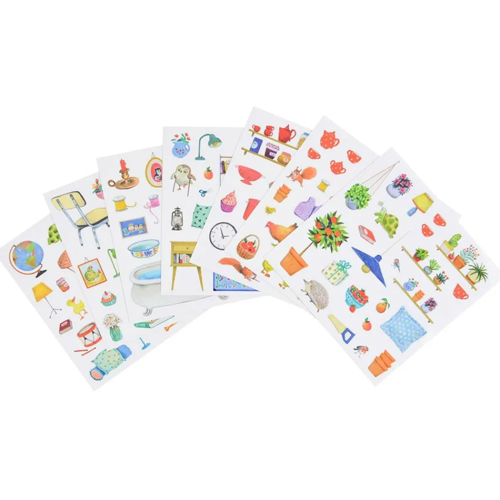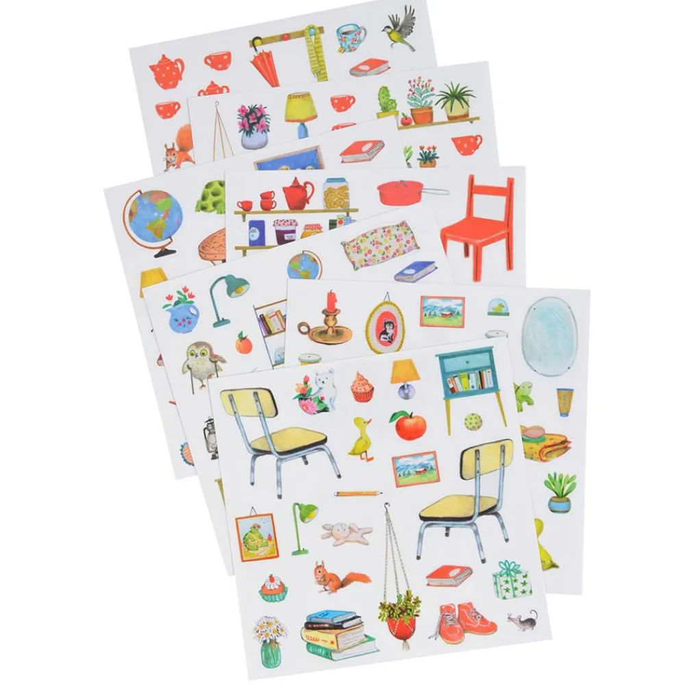 En fin kombination af malebog og klistermærkeleg, hvor dit barn først kan male eller farvelægge de 20 sider og bagefter dekorere de forskellige rum og scenarier med flotte klistermærker.