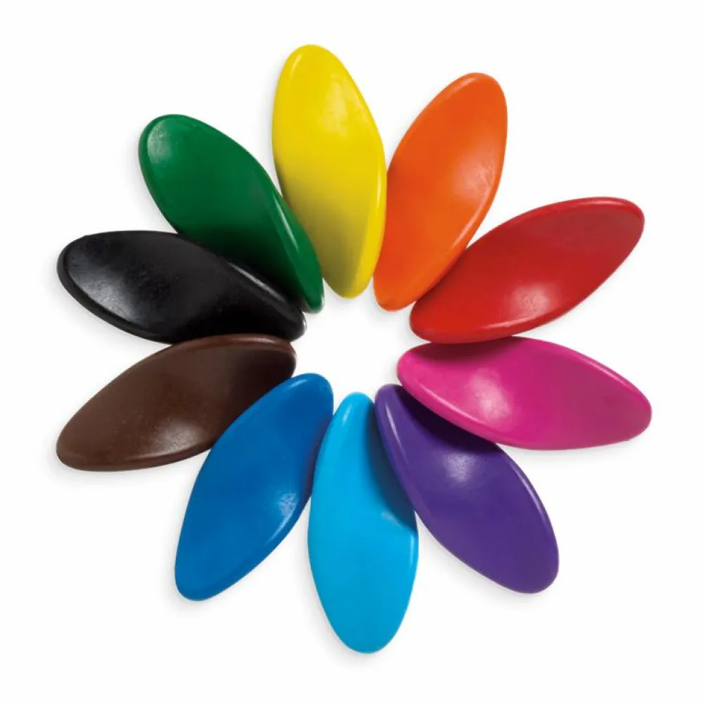 10 ergonomiske farvekridt, som er sjove at holde om og har flotte farver.