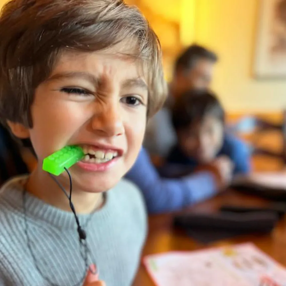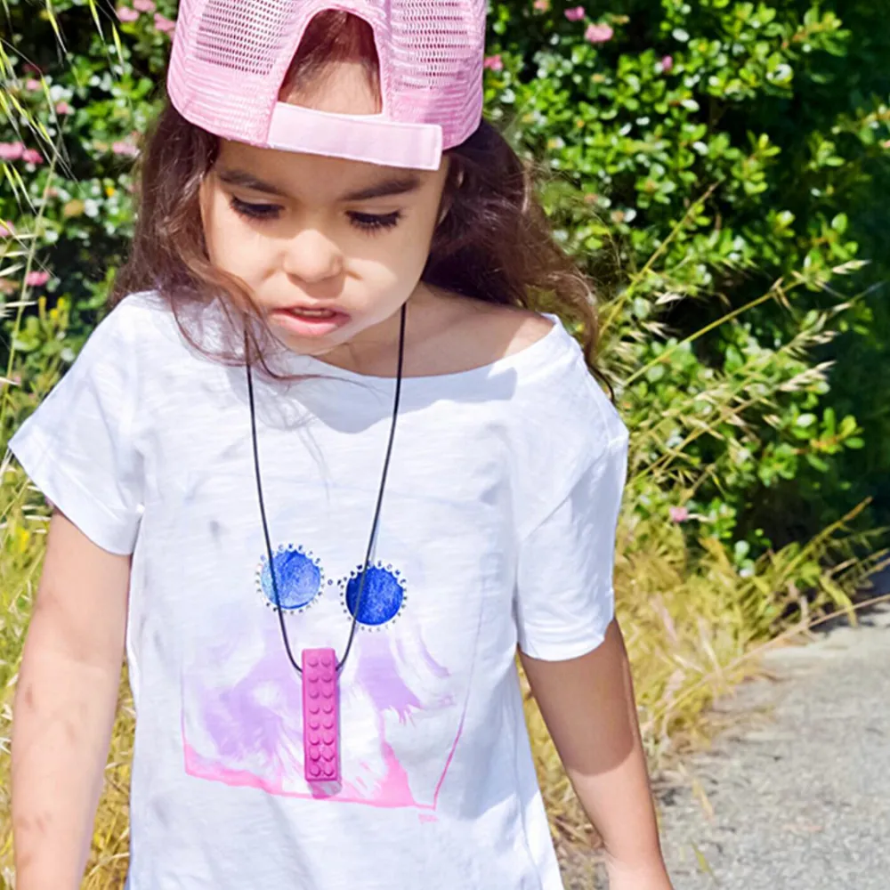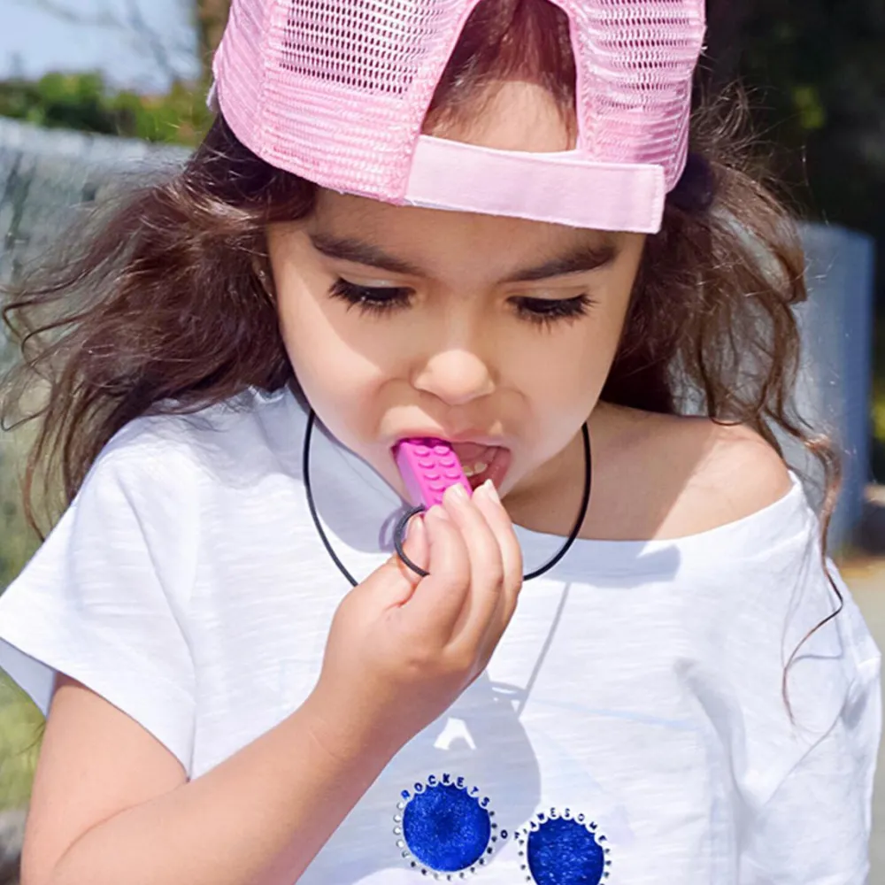 Med et tyggesmykke om halsen, kan dit barn finde ro uden at komme til at tygge i ærmer, puder eller andre ting.