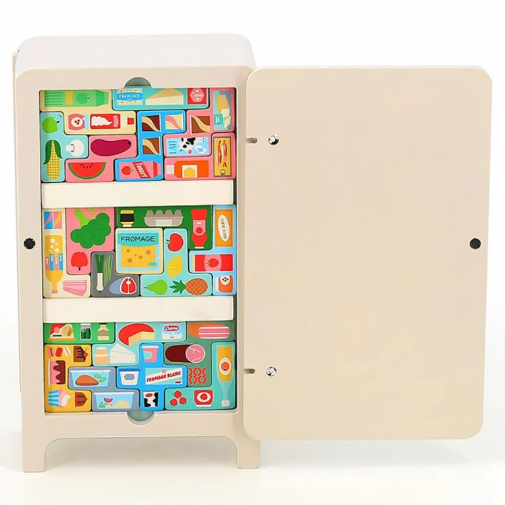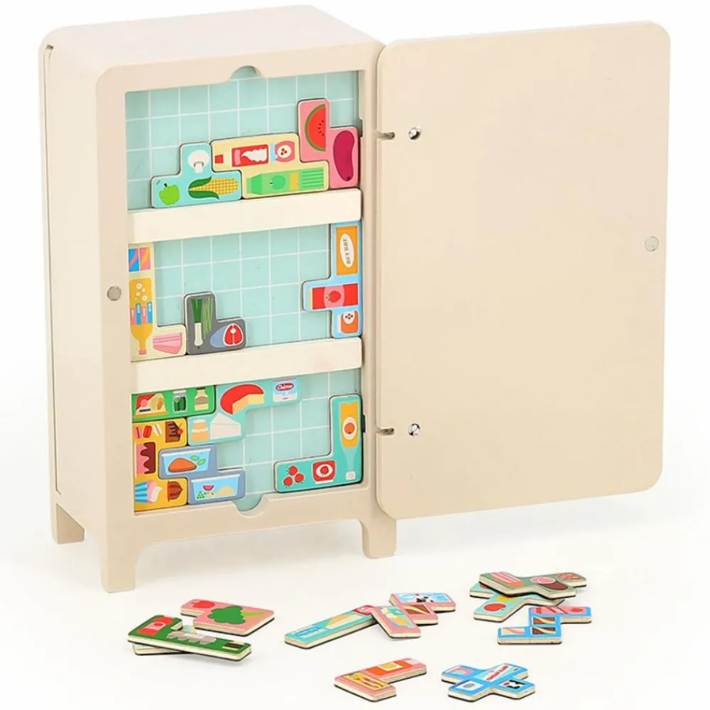 De små brikker med madvarer på er magnetiske, og det er simpelthen så hyggeligt at sidde og nørkle med at fylde køleskabet op.