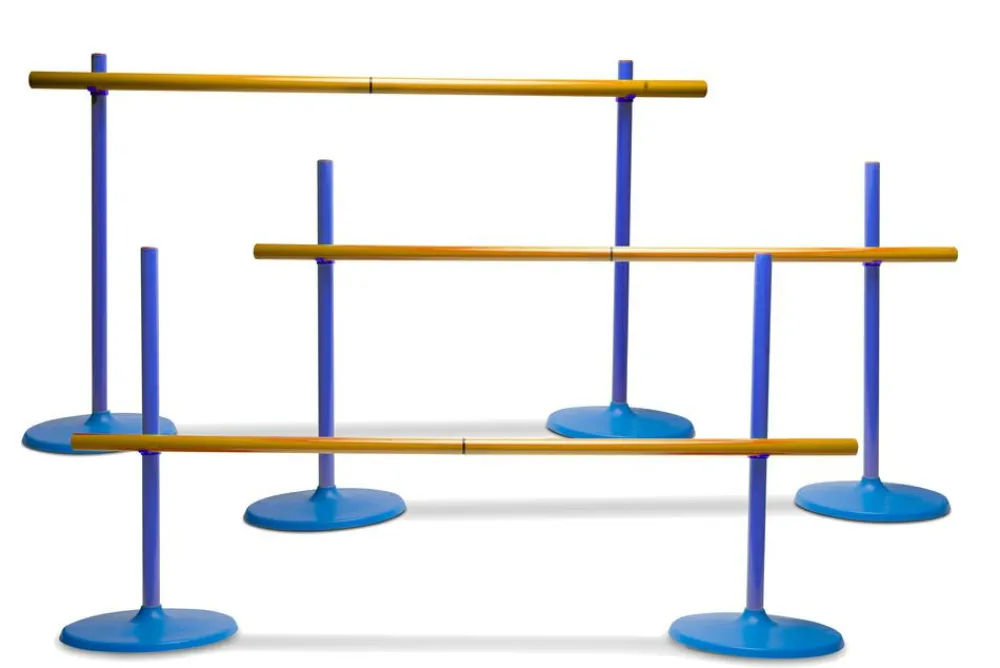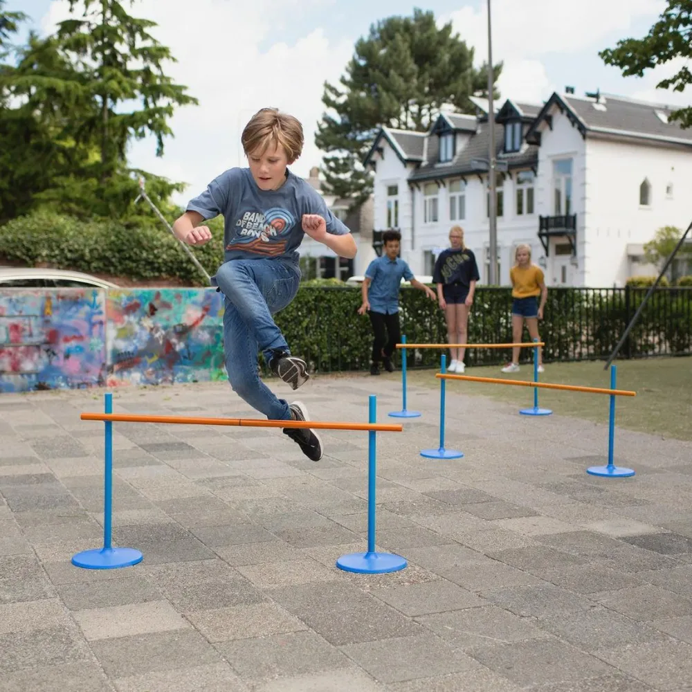 Der er 3 spring, som kan kombineres til en limbostang. Højden er fra 56 cm til 102 cm, alt efter hvordan du indstiller dem i forskellige højder.