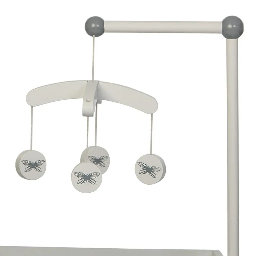 Der er naturligvis også en smuk hylde med plads til bleer, tøj osv, og uroen hænger lige, som den skal.