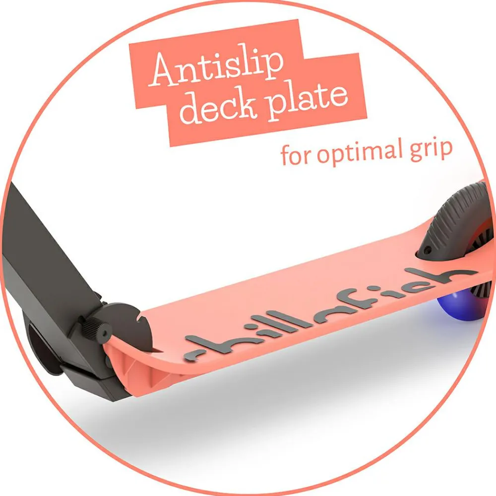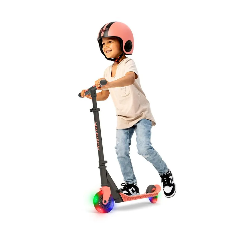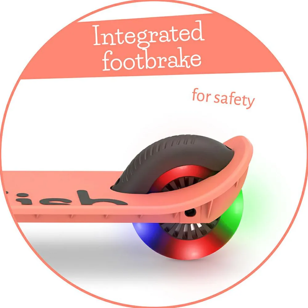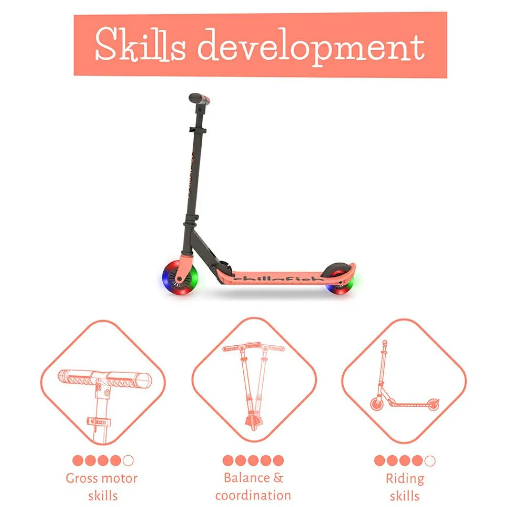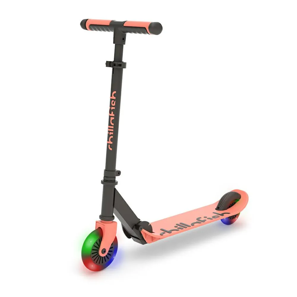 Sejt løbehjul, som er nemt at folde sammen og tage med ind i skolen eller med i bussen eller smide om i bagagerummet. Og så har det LED-lys i hjulene som en ekstra sjov detalje, der sikrer at løbehjulet oså er spændende i det mørke vinterhalvår.