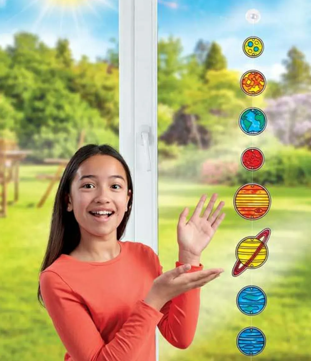 - 8 planeter med optegnede silhuetter, som gør det nemt at male dem.