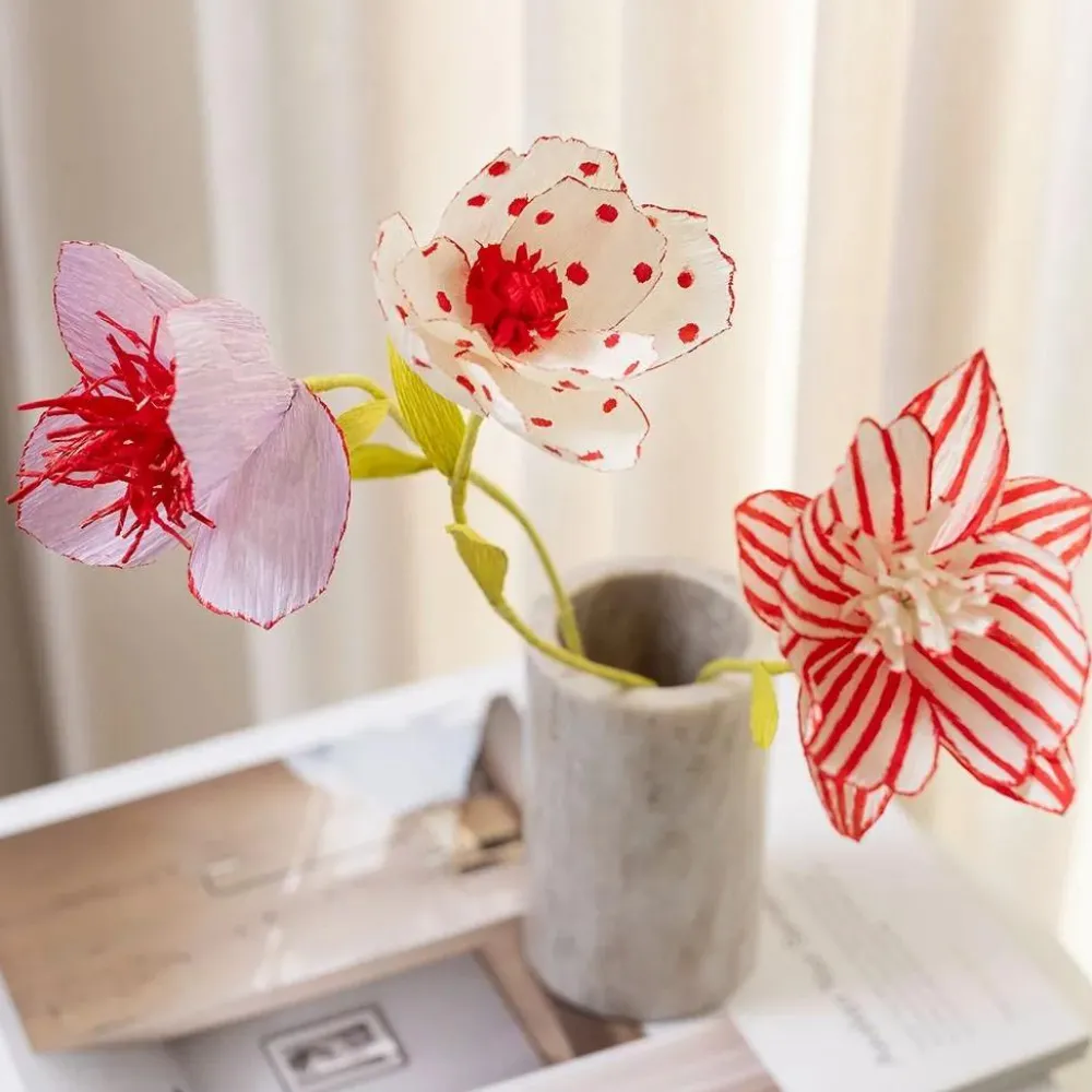 Crepepapiret har en stræk-/crepeprocent på 180. Og hvad betyder det så? Jo det betyder, at det er godt til for eksempel at lave papirblomster ud af, for det kan nemt trækkes og formes, uden det brister og går i stykker.