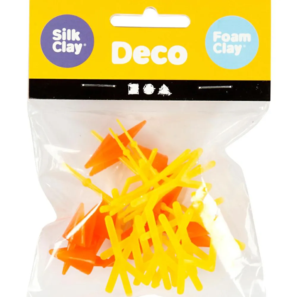 Hver del er monteret på en stift, der kan stikkes i emner af fx styropor og Silk Clay.