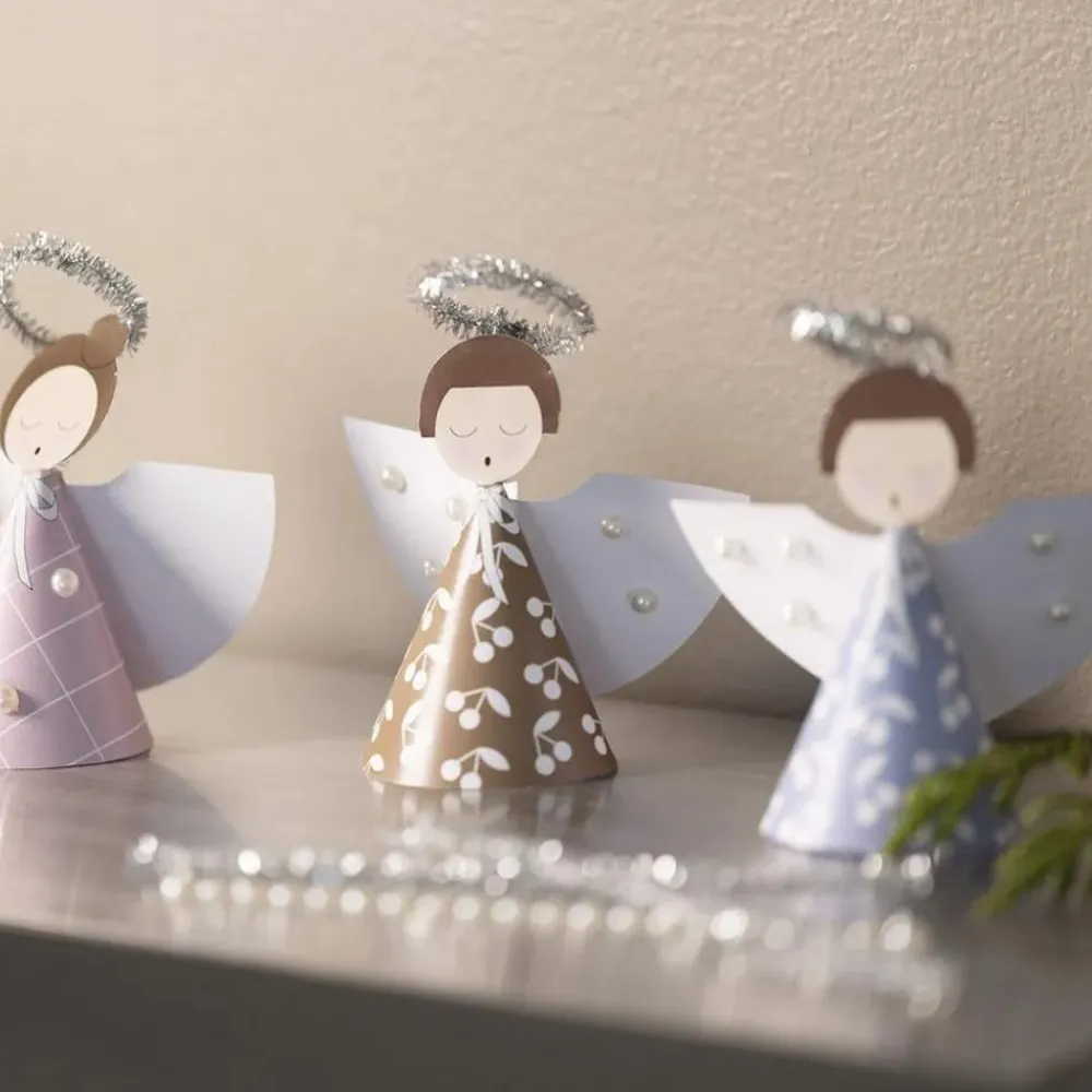 Når krea-projektet er færdigt er englene friske på at pynte på bordet eller måske på en hylde eller i en vindueskarm. Eller måske plager de om at blive givet i gave til nogen, I besøger i julen.