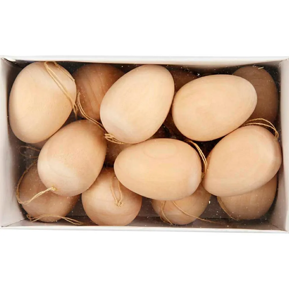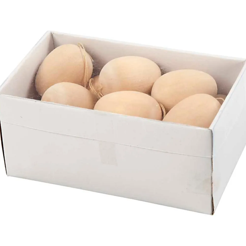 Disse fine æg af den lette træsort lotus-træ er gode, hvis I gerne vil male på påskeæg med akryltusser eller andre former for maling, hvor en let sugende overflade er god.