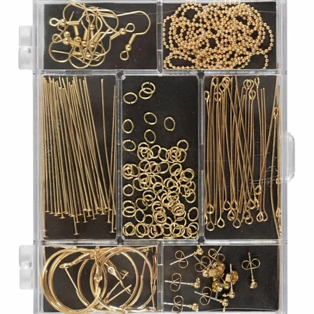 Indhold: Franske ørekroge, ørestikker, creoler, perlestilke med og uden øje, o-ringe og kuglekæde.