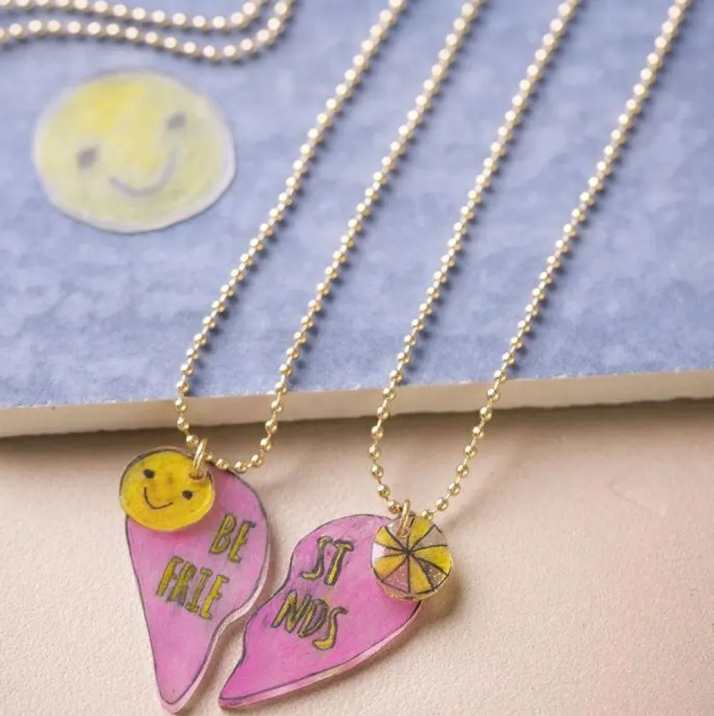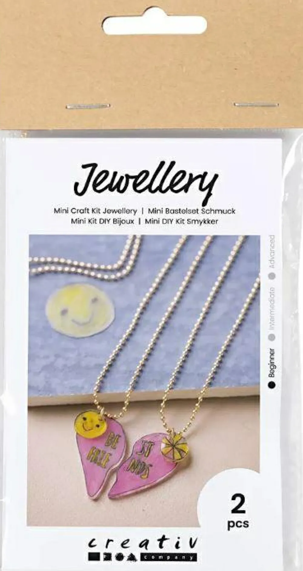 I dette sæt finder I alt det, I skal bruge for at lave to matchende venindehalskæder med kæde og krympeplast.