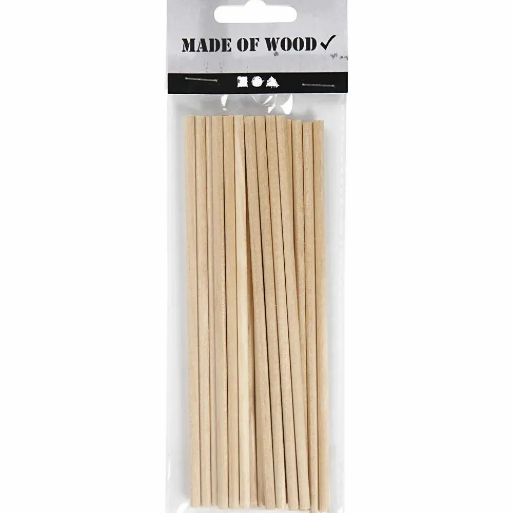 Her er 20 træpinde til hjemmelavede lege-slikkepinde, tryllestave, små blomster eller måske som stænger til malede flamingoæg eller kastanjer, som skal løftes op og måske sættes i vase.