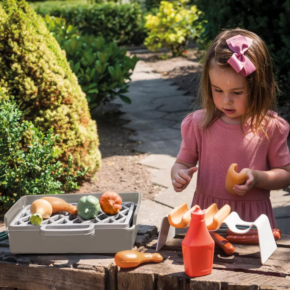 Har dit barn legekøkken indendørs eller på altanen, hvor der ikke er så meget plads, så er dette lille grillsæt perfekt. Det fylder ikke ret meget, det er let at flytte rundt på, og det er af den gode Dantoy-kvalitet, der holder i evigheder.