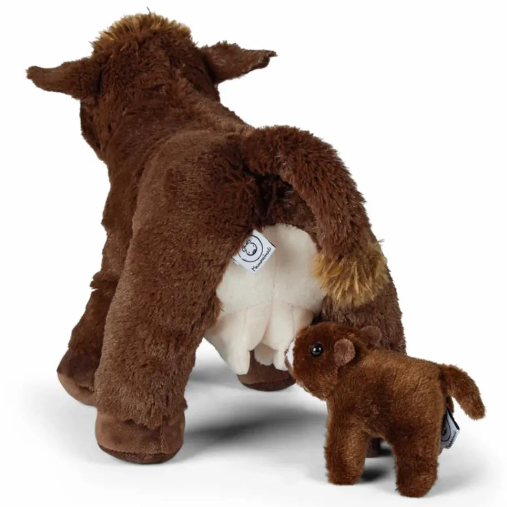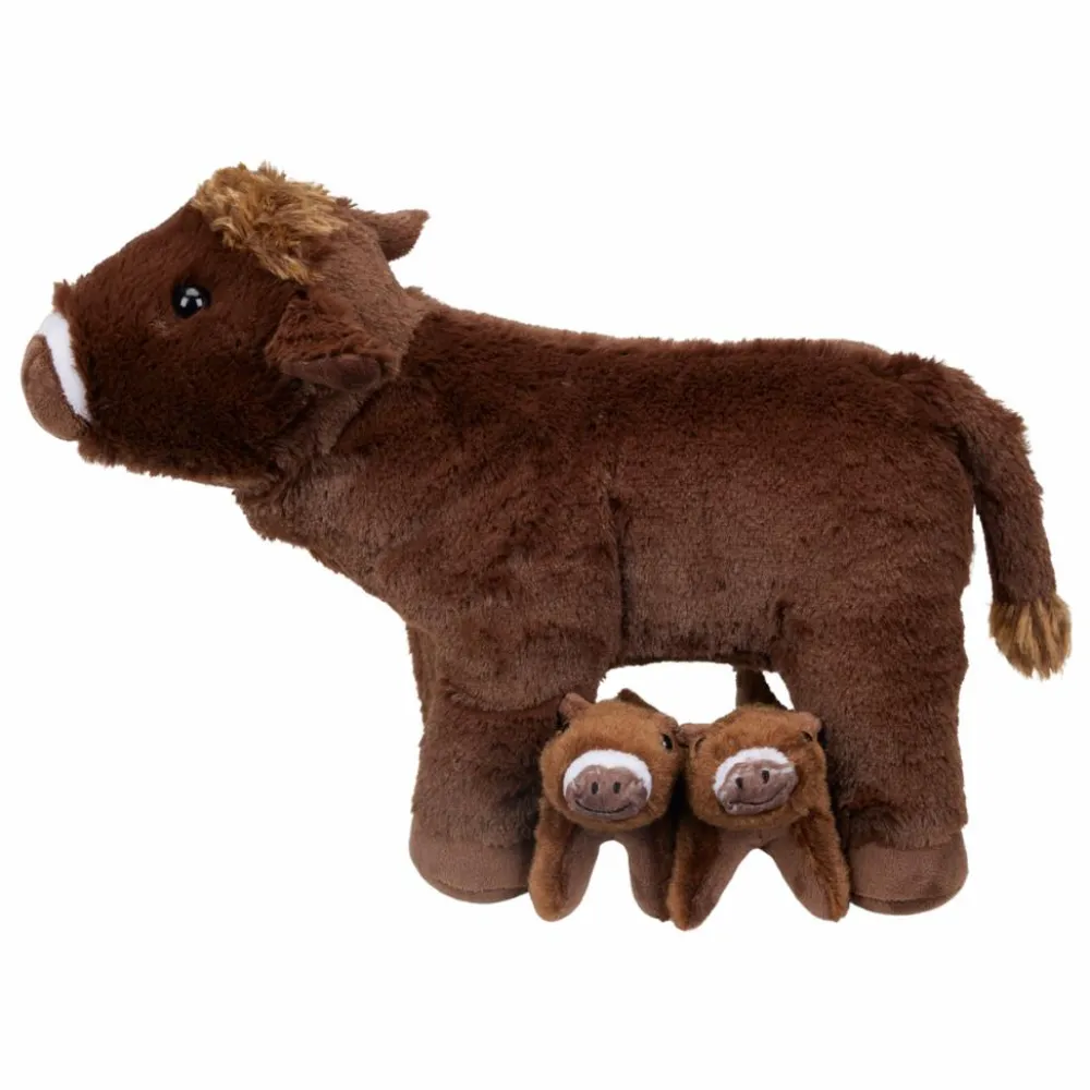 Der er en lomme i koens mave, hvor en kalven kan gemmes bag en lynlås. Dit barn kan lege, at koen er gravid, men det er også praktisk, hvis familiebamsen skal med i børnehave.