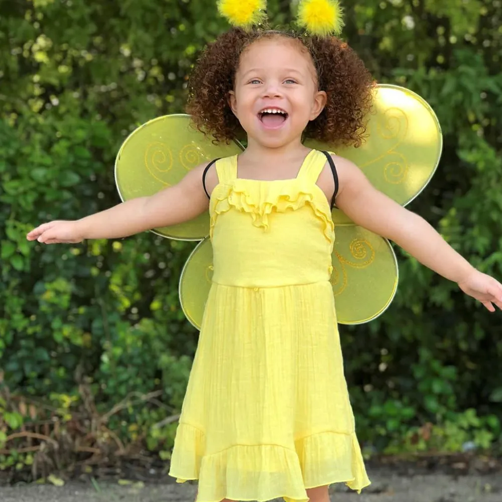 Med vinger og hårbøjle kan dit barn blive til en flittig bi, som du gerne vil have summende rundt i stuen.