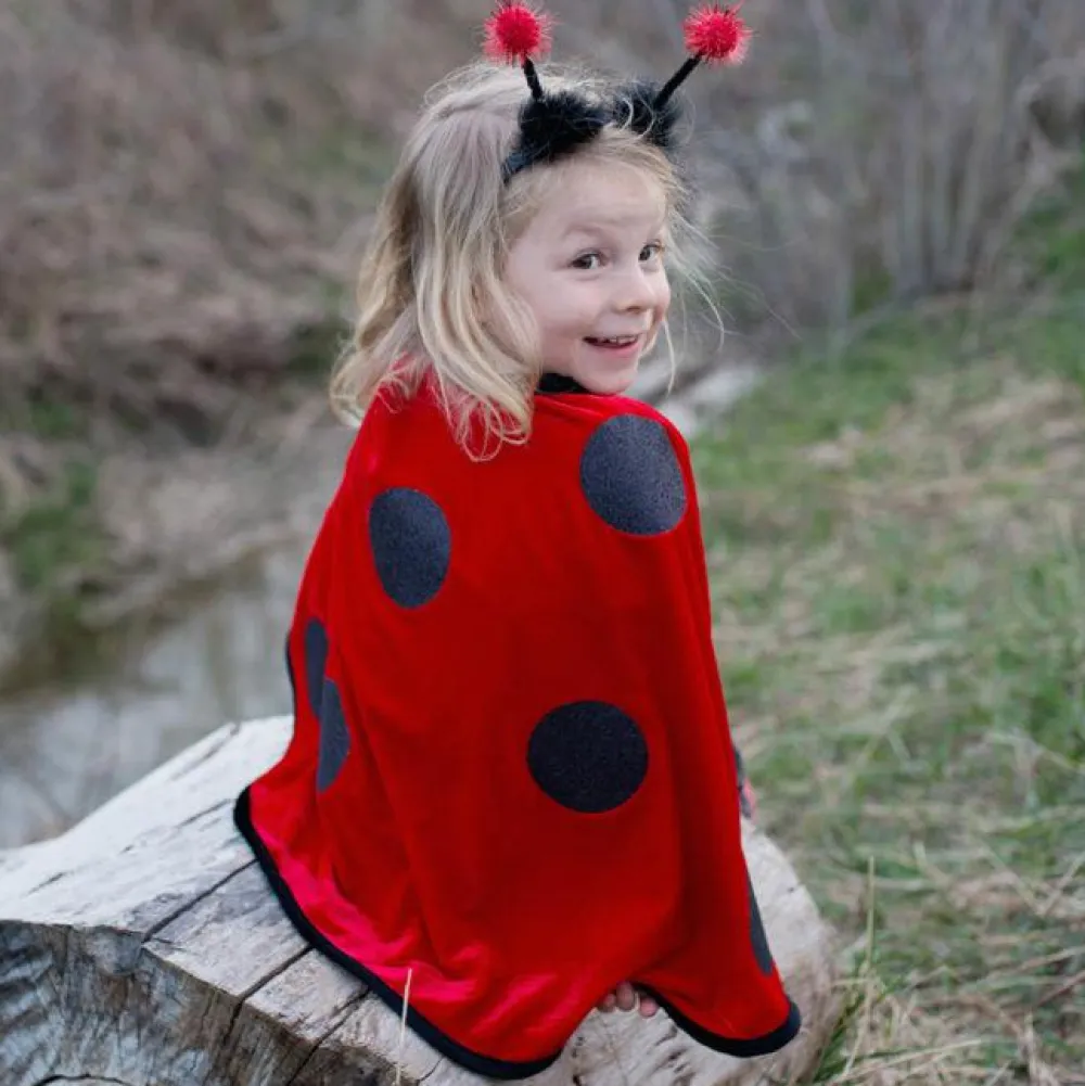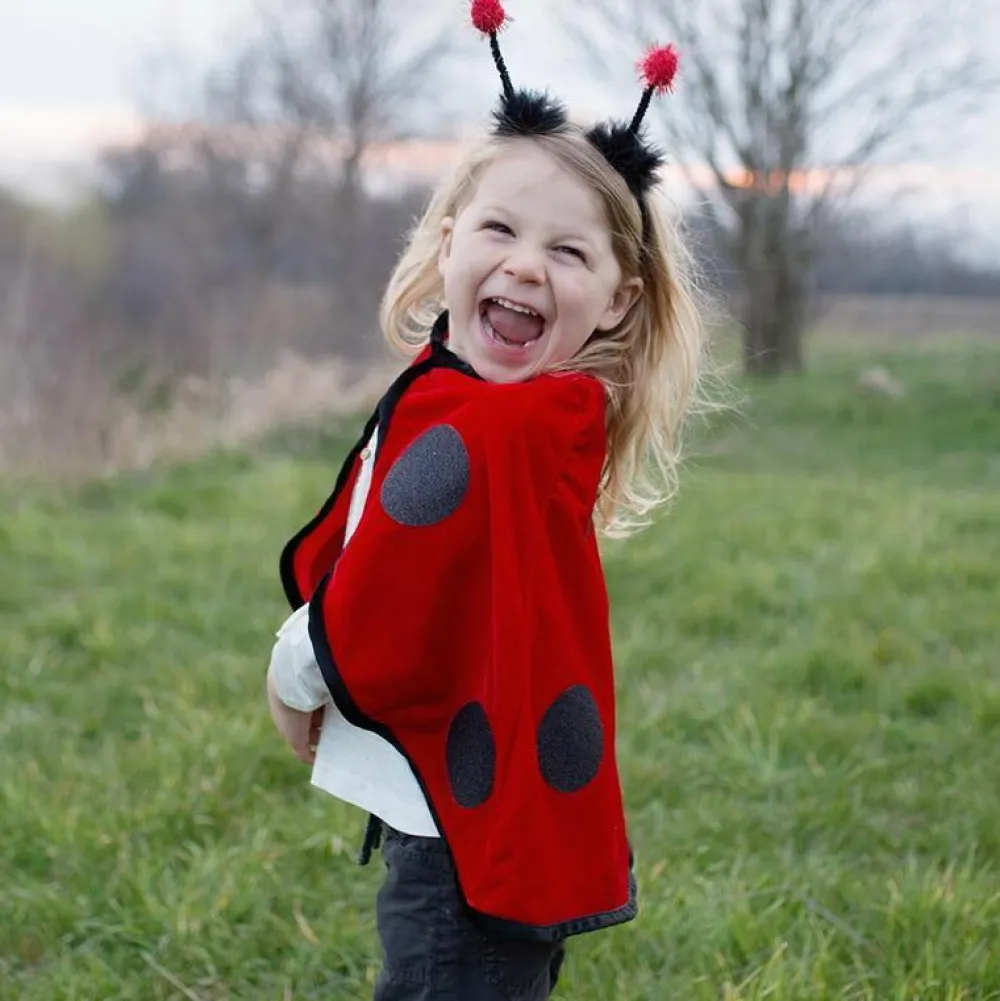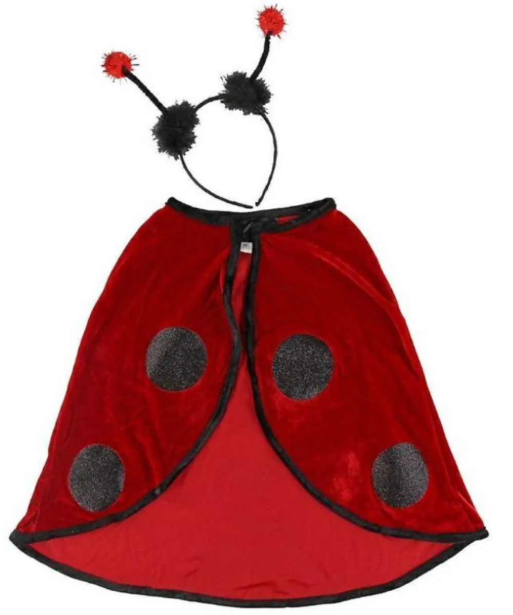 Dette fine mariehøne kostume består af en kappe med hårbøjle til. Med den på hovedet er dit barn klar til både udviklende rolleleg og fastelavn på nul-komma-fem.