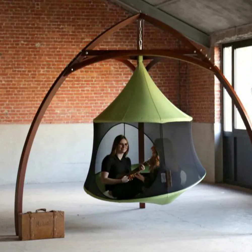 Hængehuset har netsider, så man kan kigge ud på omverdenen, mens man ligger og slapper af.