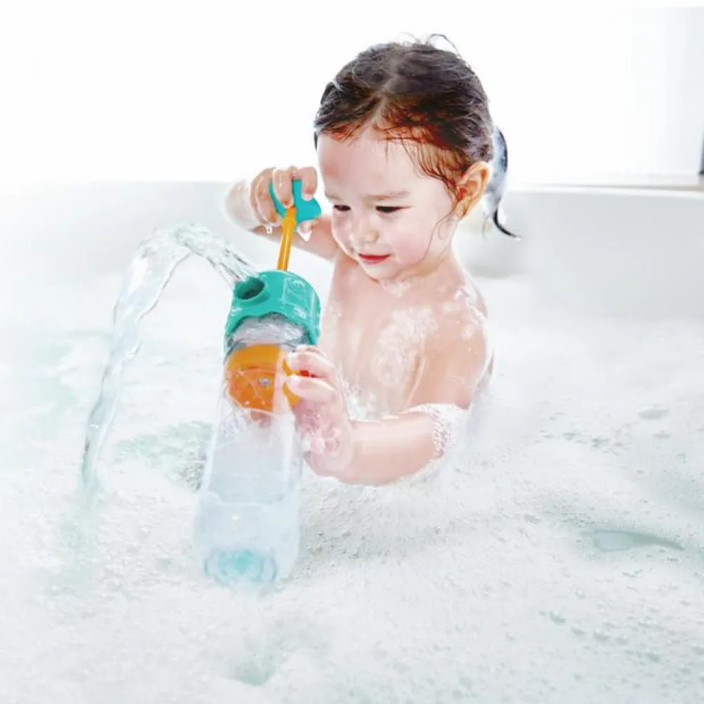 Hvis du først åbner for muligheden for sprøjteleg i badet – hvilket vi absolut anbefaler, hvis dit barn skal blive en vandhund – , så lad det blive med den her virkelig sjove kæmpesprøjte, der kan sjaske vand allevegne med 4 forskellige mundstykker med forskellige stråletykkelser.