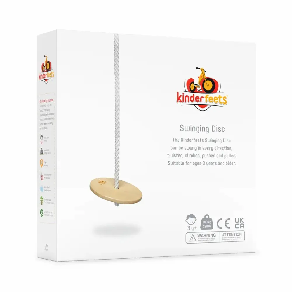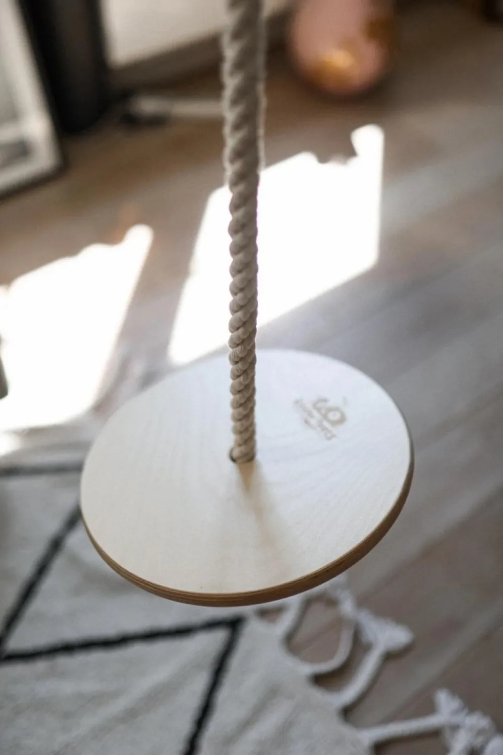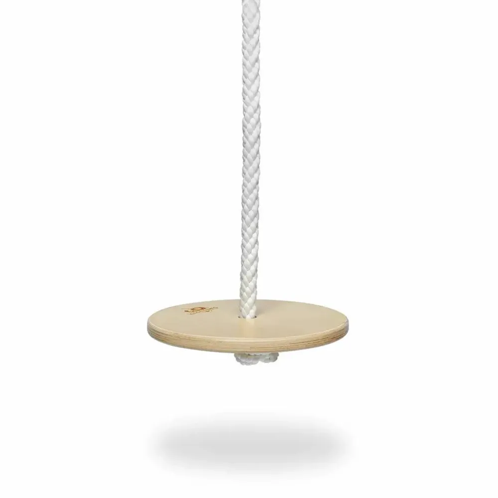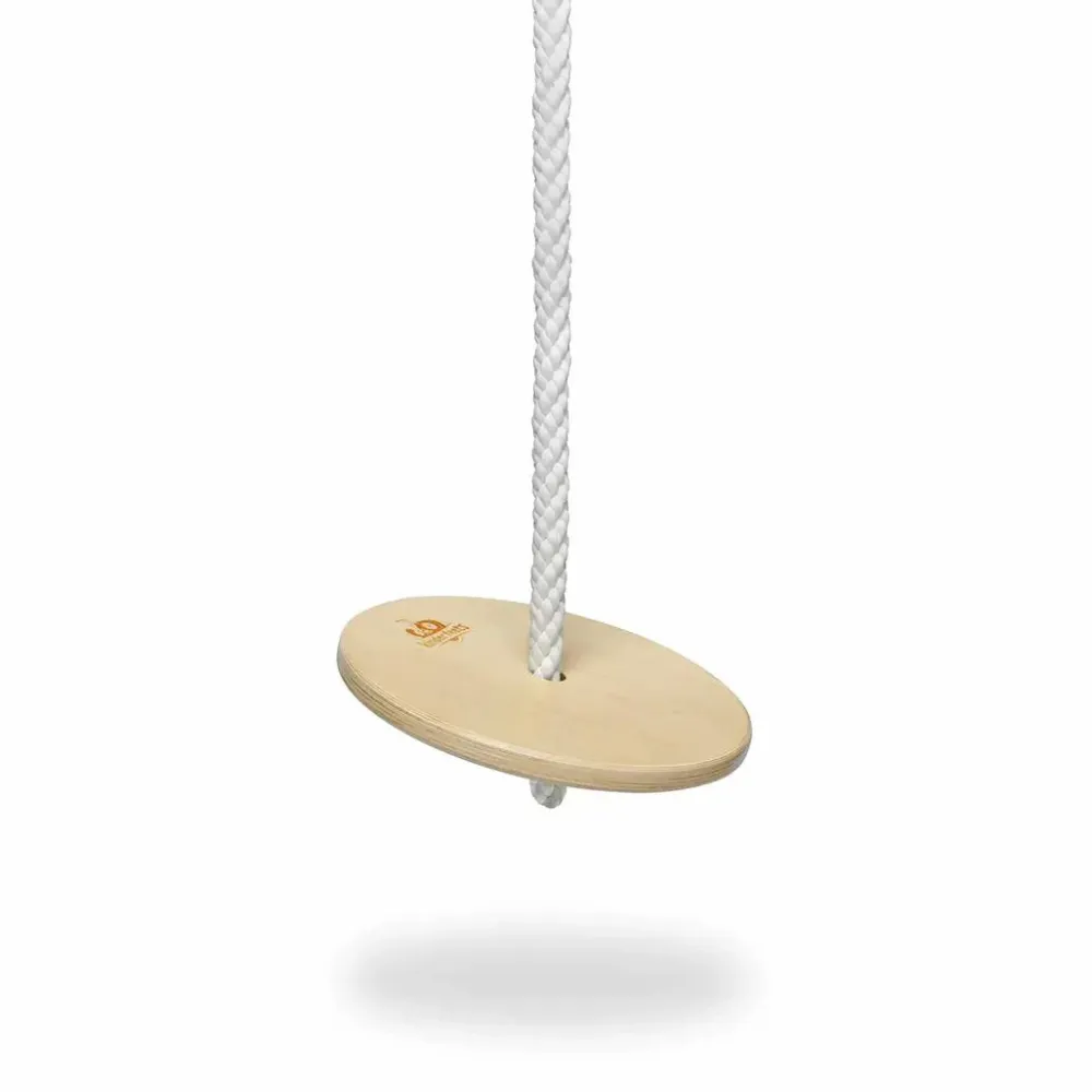Af reb og birketræ malet med vandbaseret lak. Husk at vedligeholde tallerkengyngen med ny lak, hvis lakken bliver slidt af.