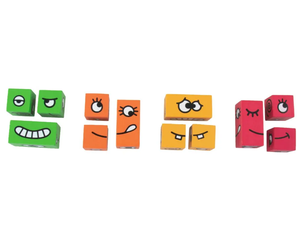 Ved første øjekast ligner dette spil 4 klodspuslespil, hvor ungerne kan pusle sig frem til at samle billeder med følelsesfulde fjæs.