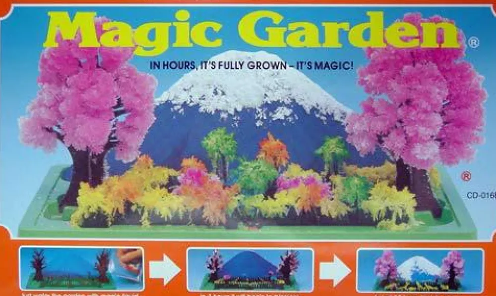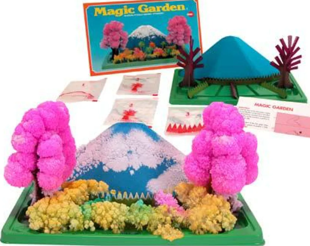 Med dette sæt kan du sammen med dit barn lave flotte krystaller, som samtidigt ligner en lille japansk have. I sætter haven op og så suger træerne krystalvæsken og ud gror krystallerne lige så langsomt.