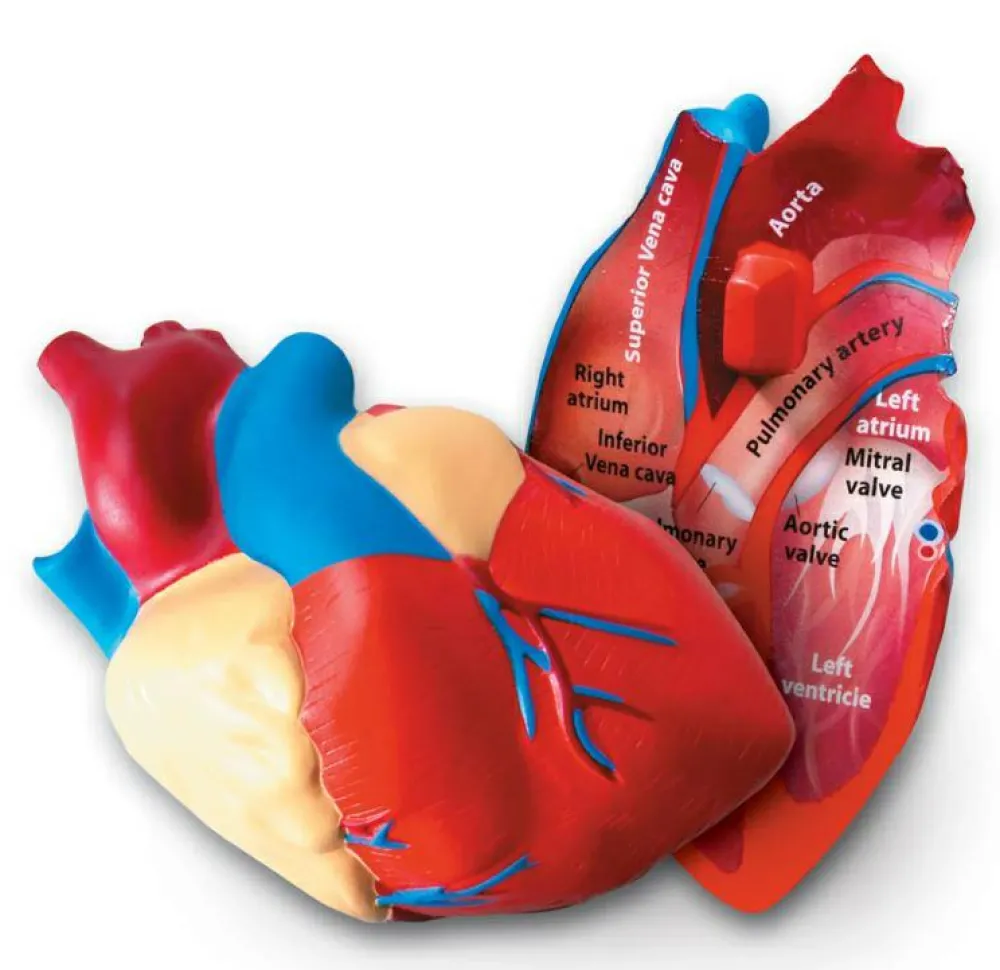 Det er fascinerende for alle børn og voksne at semed egne øjne, hvordan et hjerte ser ud indeni. Dette hjerte af skum kan deles i to, så det indre kommer til syne.