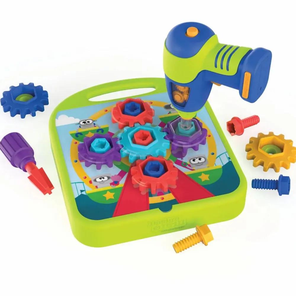 Byg på de 10 aktivitetskort med bl.a mølle og rutsjebane, der skal have tandhjul skruet fast.