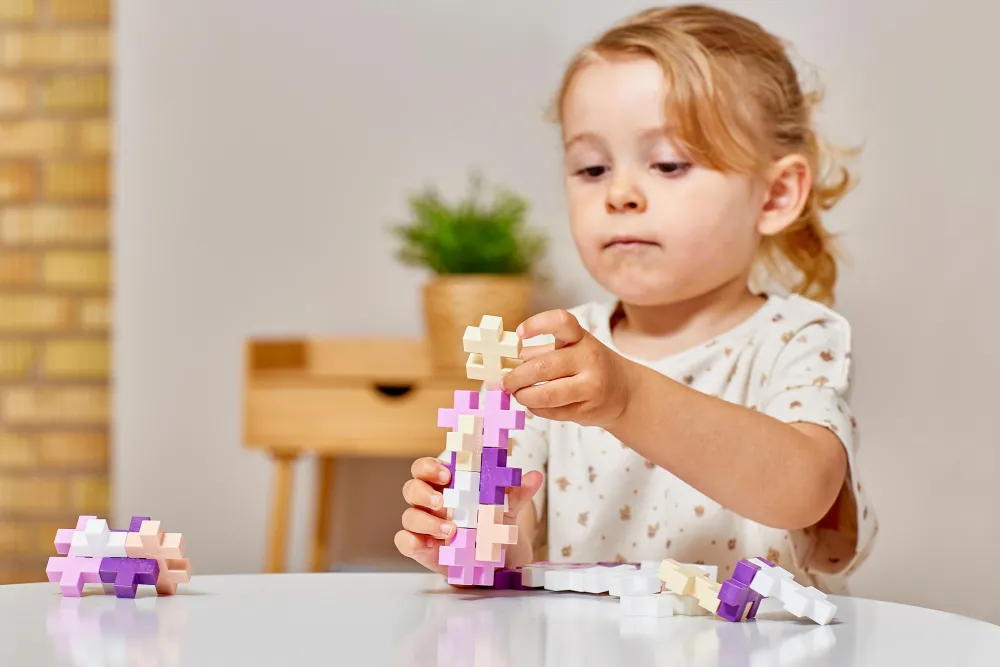 Plus-Plus er skønt konstruktionslegetøj, som begejstrer de fleste børn. Formen som små plus-tegn kan sættes sammen både i 2D og 3D – og de findes i et væld af farver og i både små (2 x 1,2 x 0,4 cm) og store (5 x 3 x 1 cm). Det udvikler dit barns sans for geometri og logik at bygge med Plus-Plus. Forslag og bunkevis af vejledninger til Plus-Plus kan du finde frem på fx YouTube.