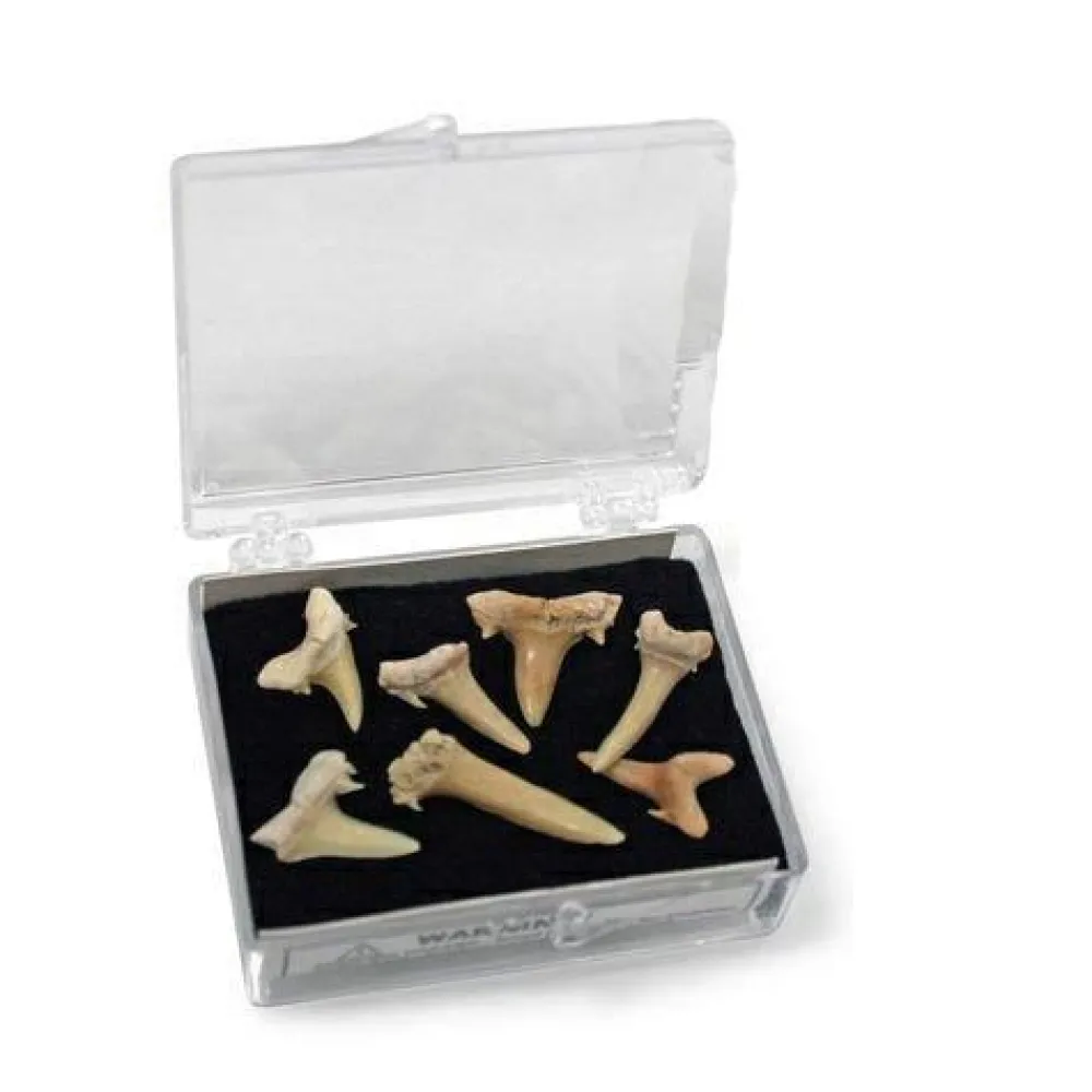 Nu er der mulighed for, at det kan blive dine børns. Det skaber respekt i skolen, når man pludselig har et haj-tandsæt i penalhuset, og det er virkelig fascinerende at se på dem, undersøge dem, måle dem og læse om dem på bagsiden af æsken.