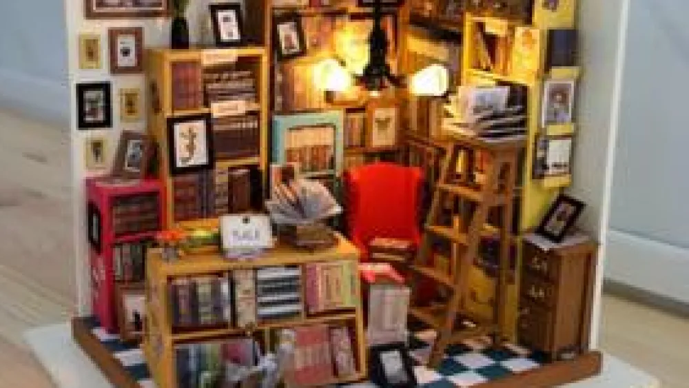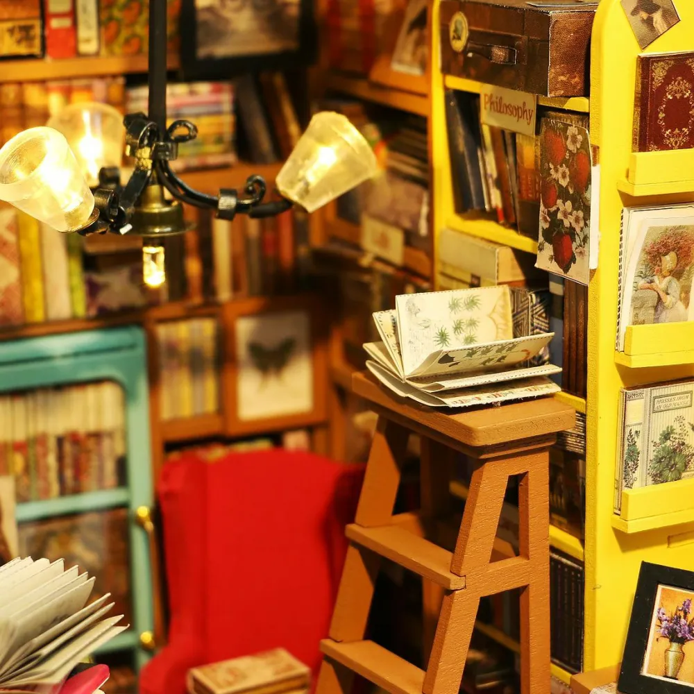 Et meget fint byggesæt i mini-format, hvor du kan få timer til at få med at samle og dekorere en lille boghandel fuld af imponerende detaljer.