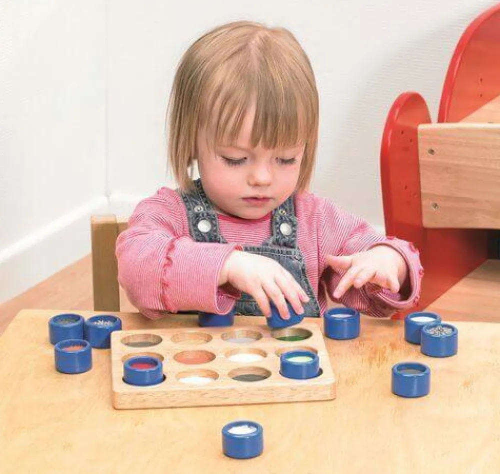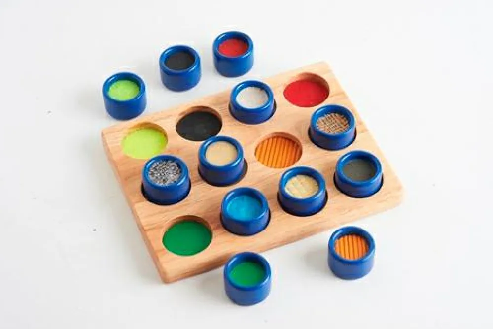 Med dette sæt skal barnet identificere og derefter matche 12 forskellige overflader op mod hinanden, som alle føles forskellige.